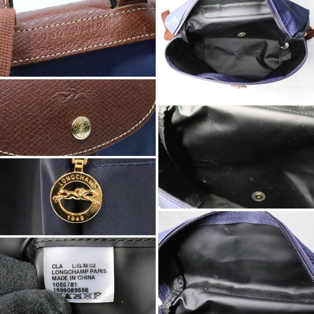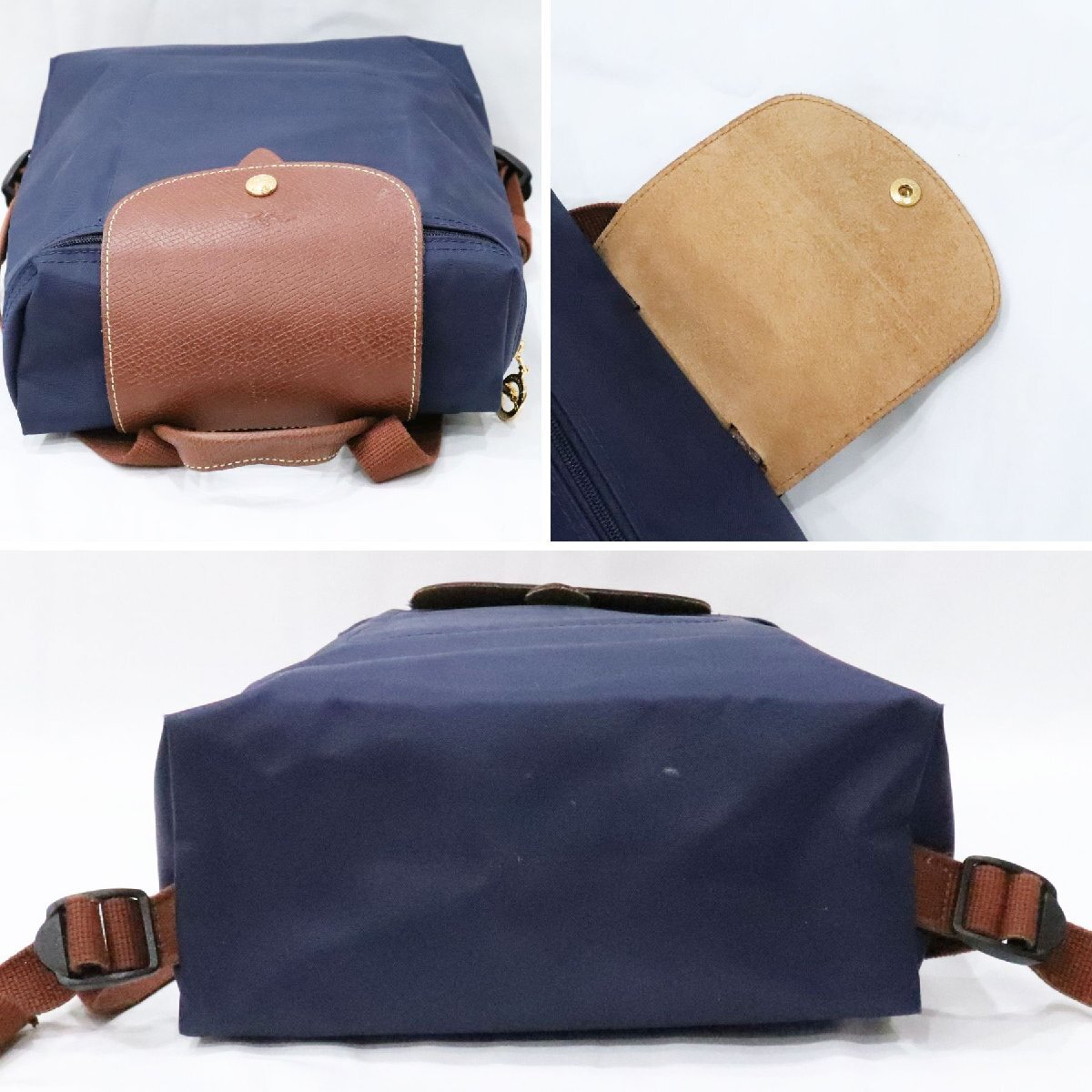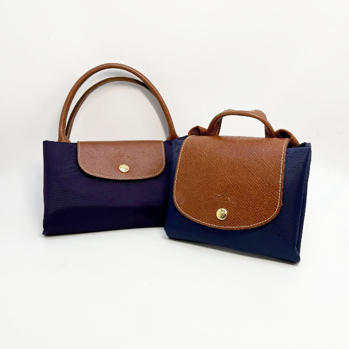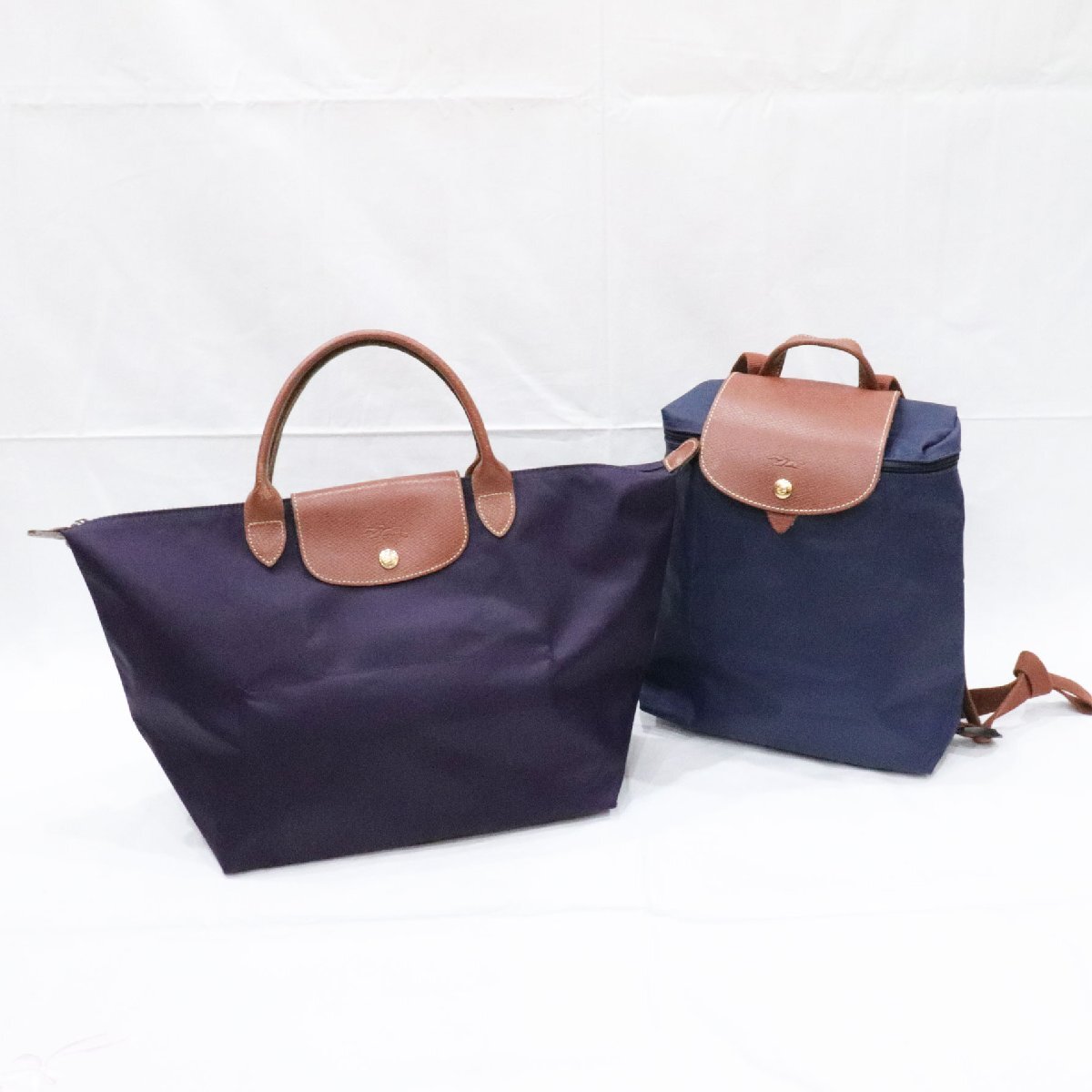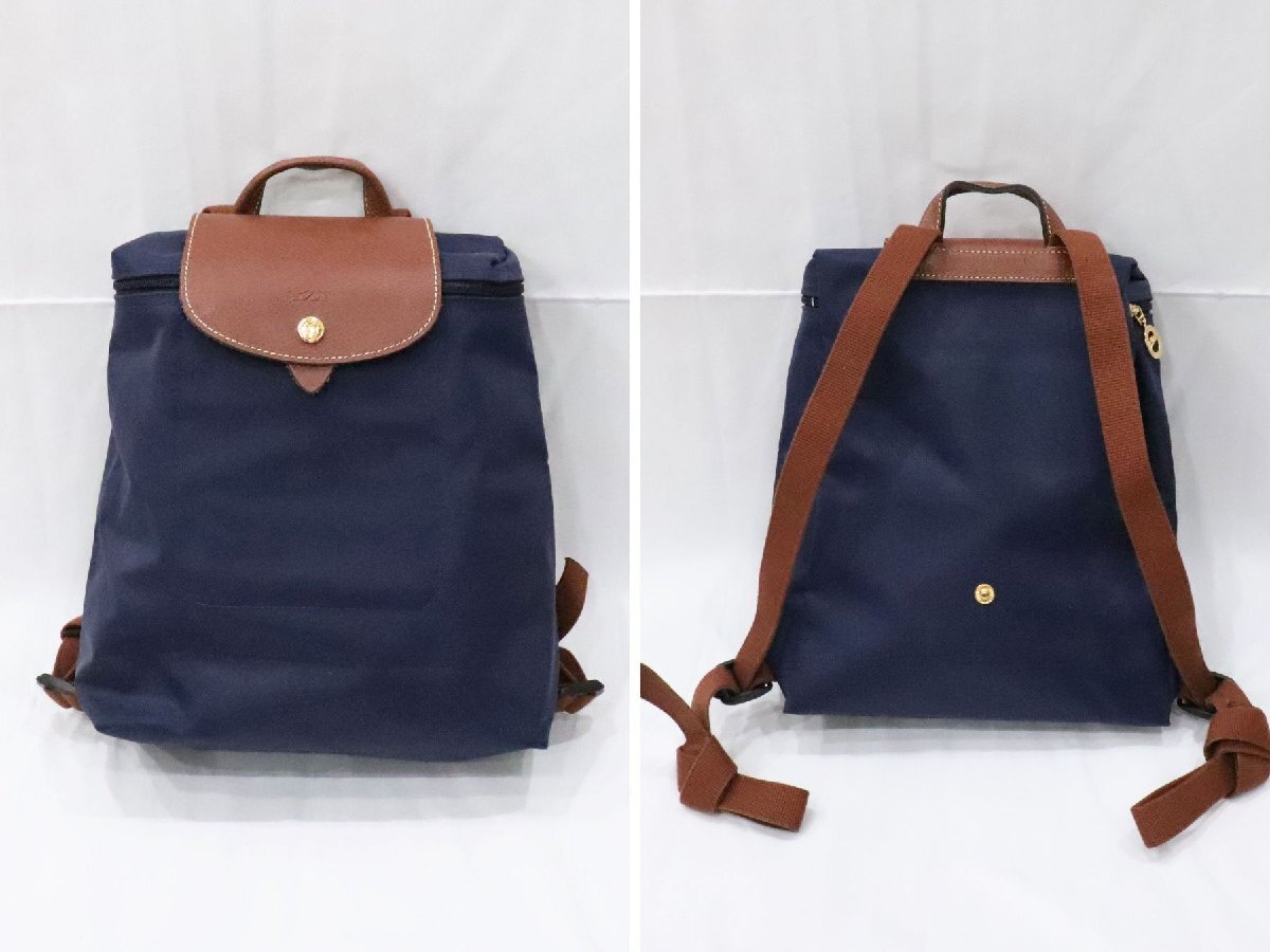 1円~ LONGCHAMP ロンシャン 2点! ル プリアージュ トートバッグ M ミルティーユ/バックパック ネイビー 折りたたみ 中古 送料無料!!
