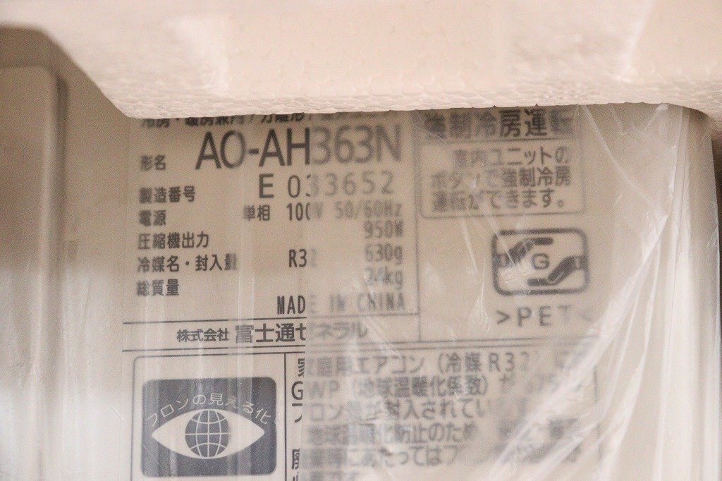 | FUJITSU◆ルームエアコン◆nocria◆スプリットタイプ◆冷媒R32◆インバーター◆室外機付◆2023年式◆AS-AH363N+AO-AH363N | ||
