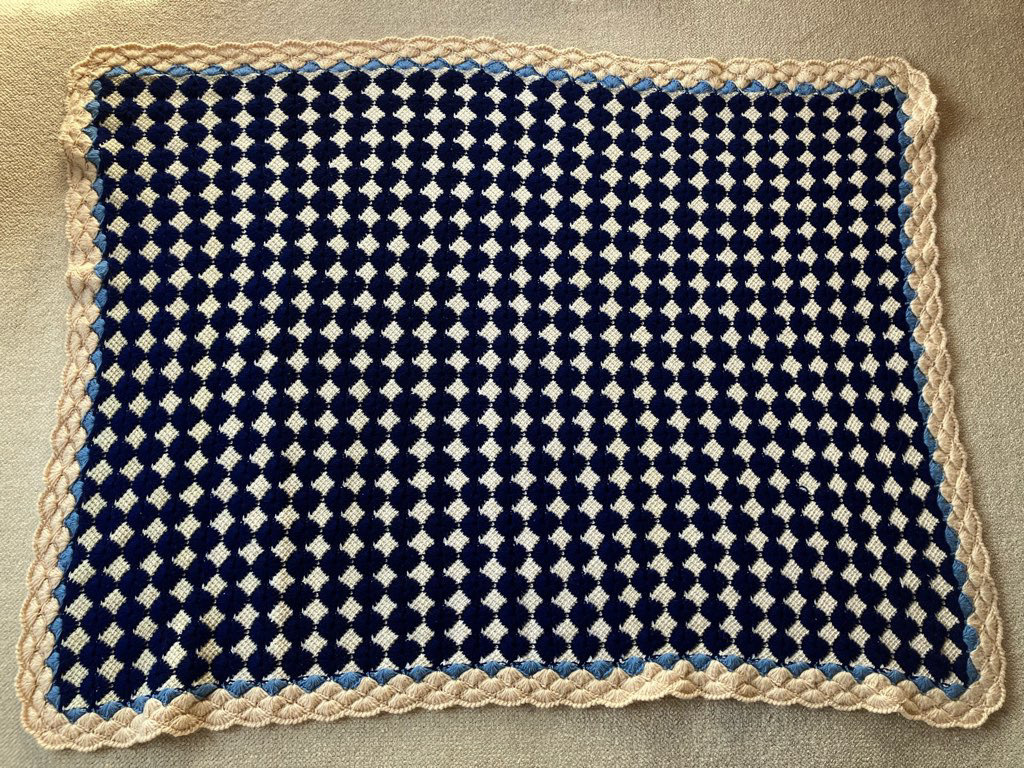 ブランケット ソファカバー 毛布 膝掛け マット マルチ用途 / ハンドメイド 手編み ウール100% 青系