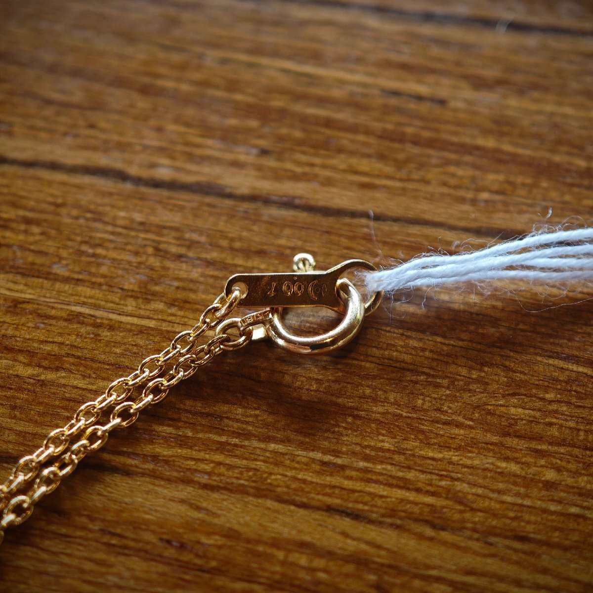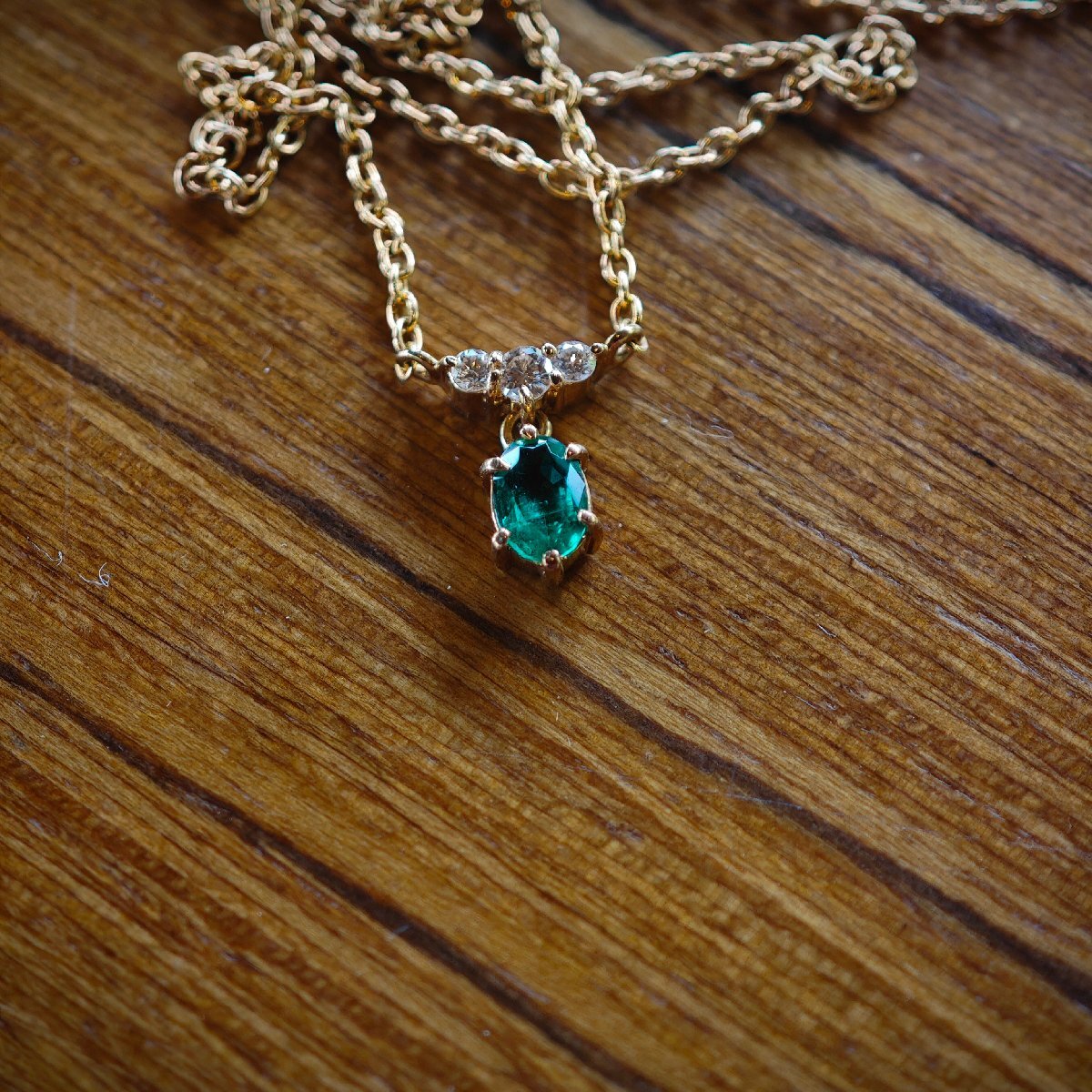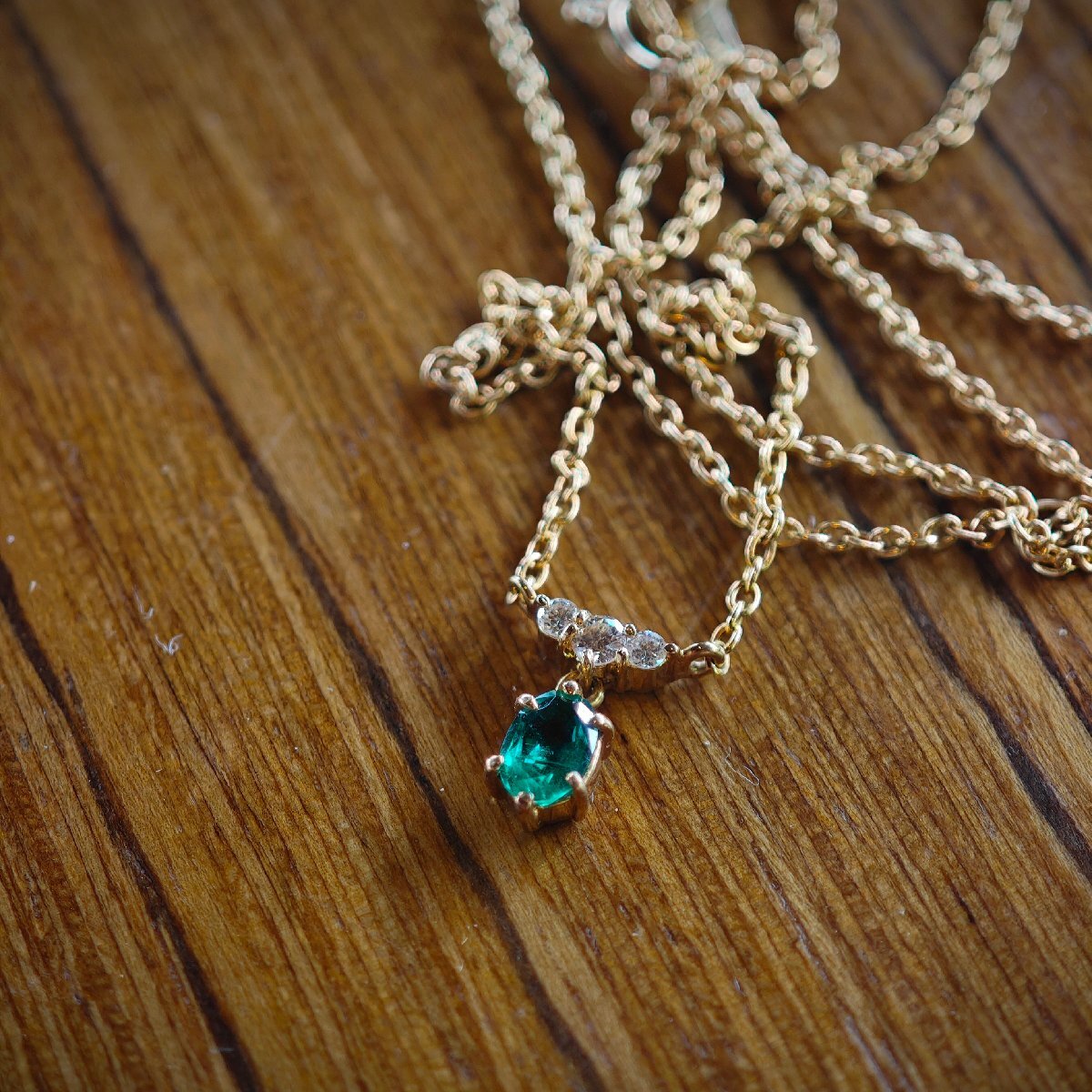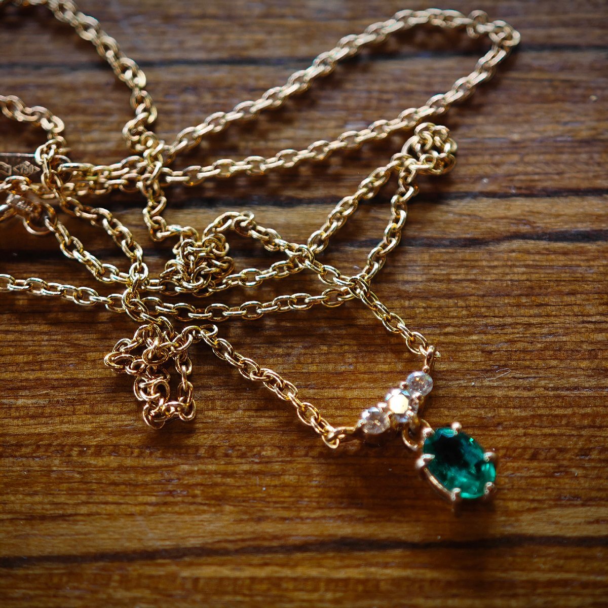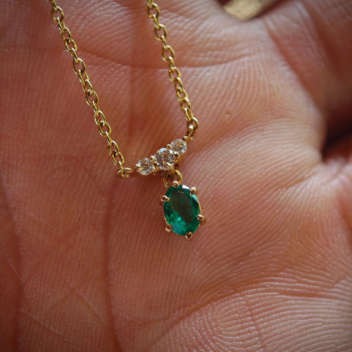 今回扱うのは、TASAKIの逸品エメラルドとダイヤモンドがあしらわれた、最高級750YG無垢のネックレス。長さは37.5-40.5cm、重さは2.7g。その華奢でありながらも存在感を放つ輝きは、確かにただの装飾品とは一線を画していた。手元に届いた実物を手に取ると、吸い込まれるような深緑色のエメラルドが、まるで遥か遠い森の奥深くで静かに息づく生命の輝きのようだった。周りを囲むダイヤモンドは、そのエメラルドを一層引き立てるかのように、繊細な煌めきを添えている。