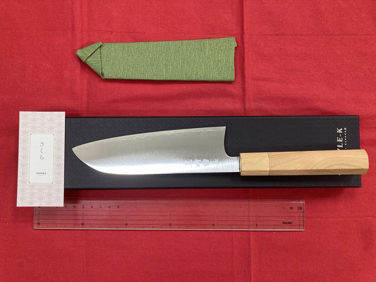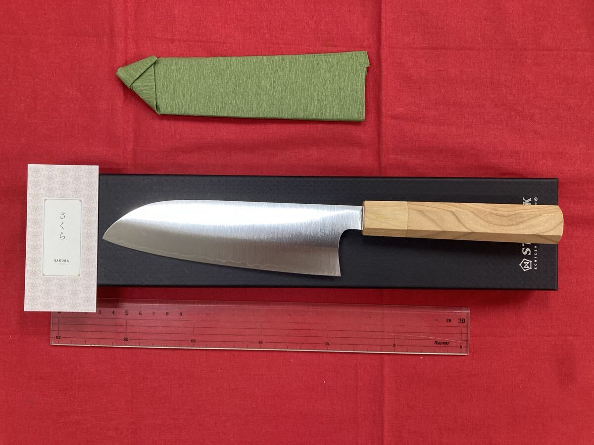 越前打刃物 黒崎真作 三徳 「さくら」165mm SG2 粉末ハイス鋼 未使用品