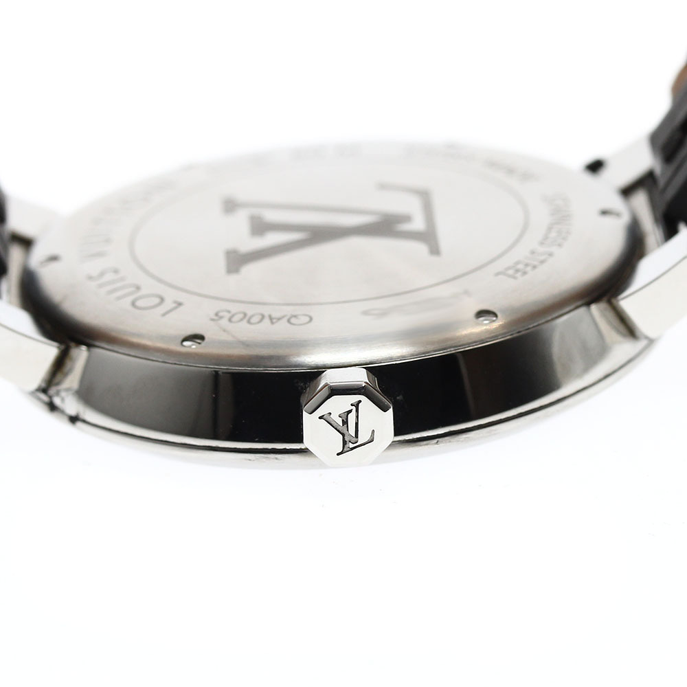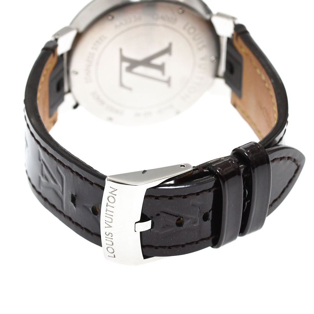 ベルト訳あり ルイ・ヴィトン LOUIS VUITTON QA005 タンブールスリム モノグラム デイト クォーツ メンズ 保証書付き_908800