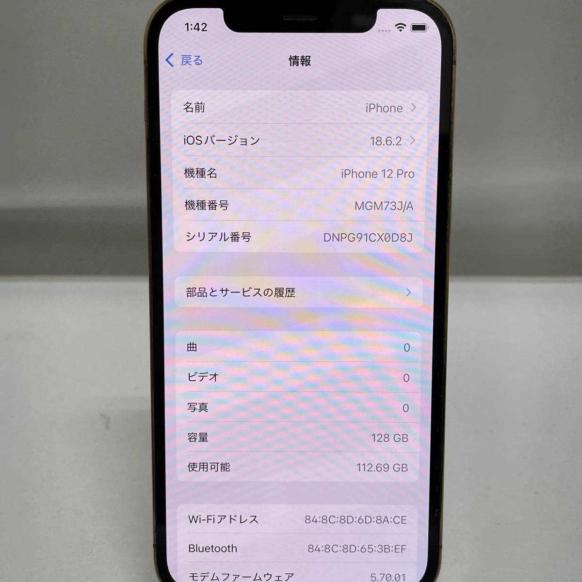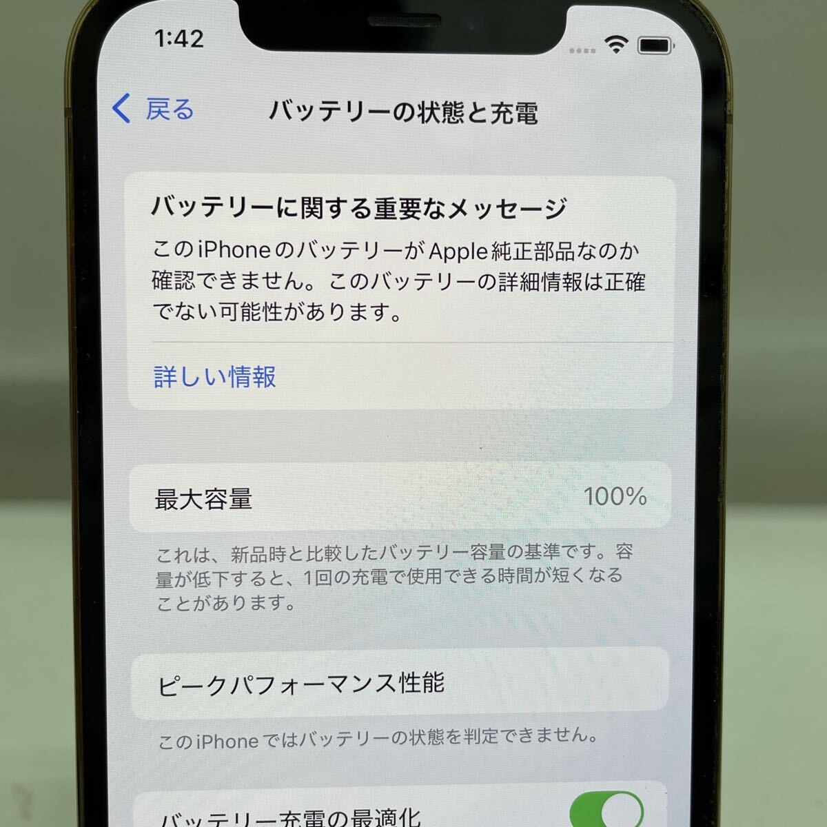 【バッテリー100%】 iPhone12 Pro 128GB SIMフリー ゴールド SIMロック解除済み 電池交換済み 利用制限◯ 残債無し 美品