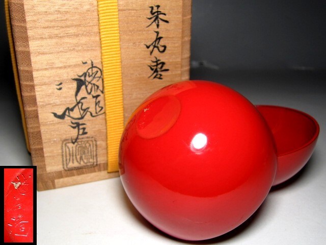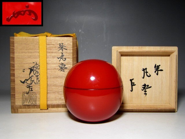 川端近左 朱丸棗 表千家十三代 即中斎花押       v910