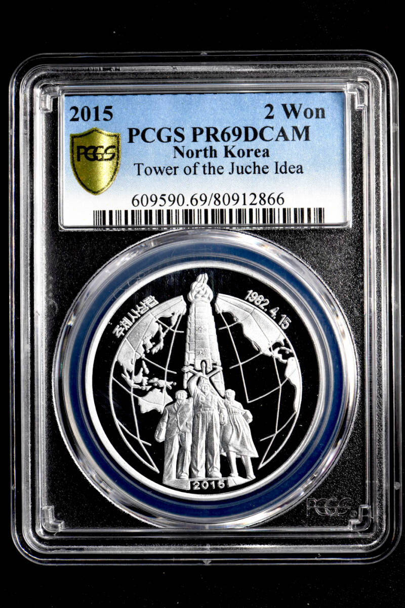★土終 【PCGS PR69DCAM】2015 主体思想の塔 2Won P社準最高鑑定 完全未使用 //世界コイン 古銭 貨幣 硬貨【決済期限火曜日】