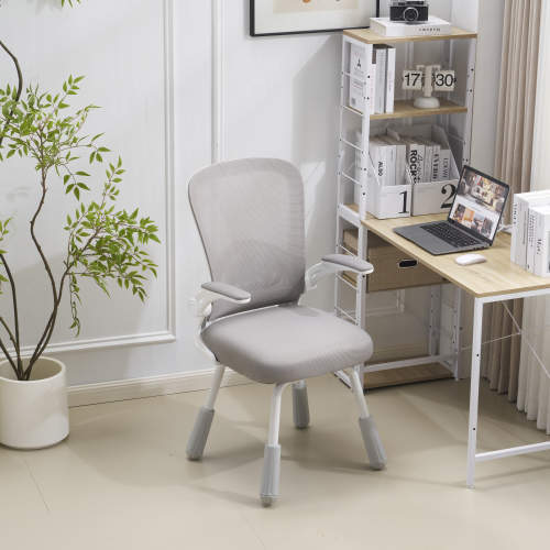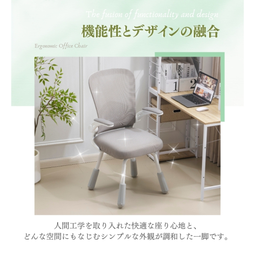 • 4.【可動式肘掛け】肘掛けは跳ね上げ式で、使用しない時は椅子をデスク下にすっきり収納可能。限られたスペースでも快適に使えます。