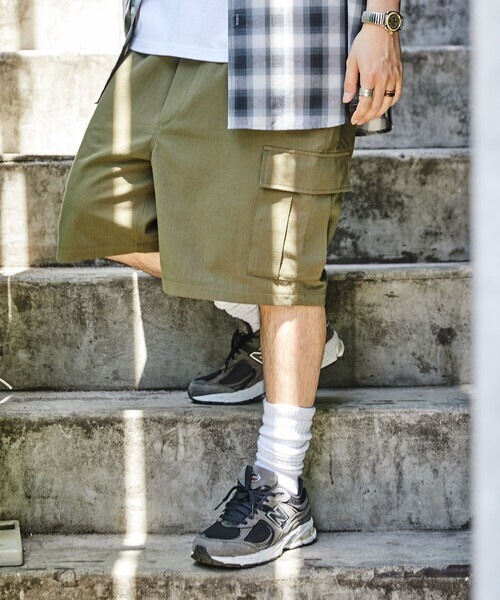 キーワード:カーゴパンツ メンズ ウエストゴム ショートパンツ ストレート ハイウエスト ワイドパンツ 無地