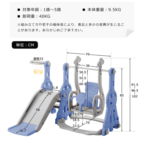 • ★3 in 1子供用滑り台★滑り台、バスケットゴールとブランコの3セット滑り台、滑り台だけでなく、ブランコやボールなどの遊びも楽しめます。