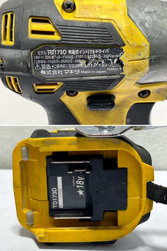 ▽makita マキタ 充電式インパクトドライバ TD173D18V バッテリ1個 充電器付 中古▽012666