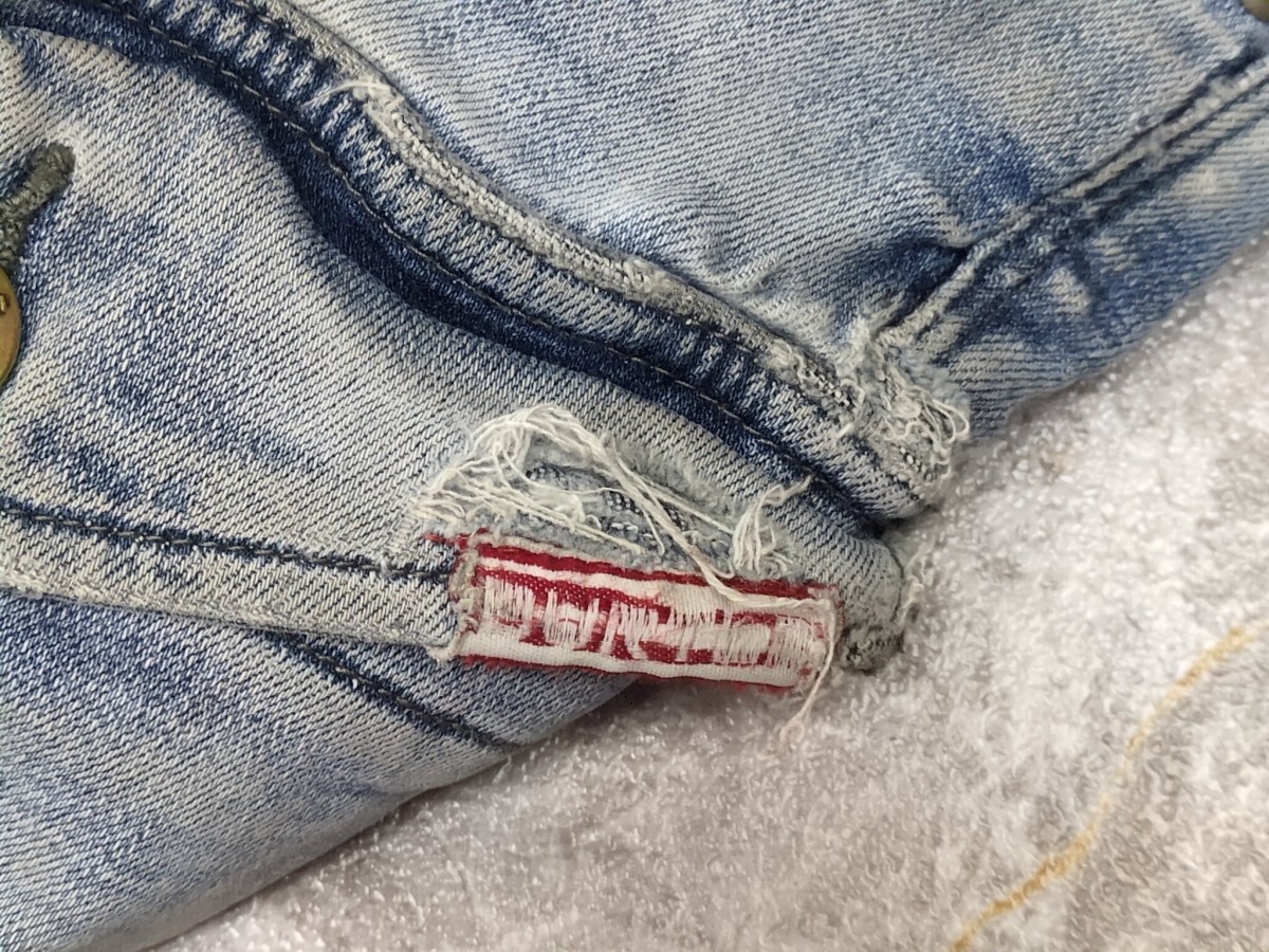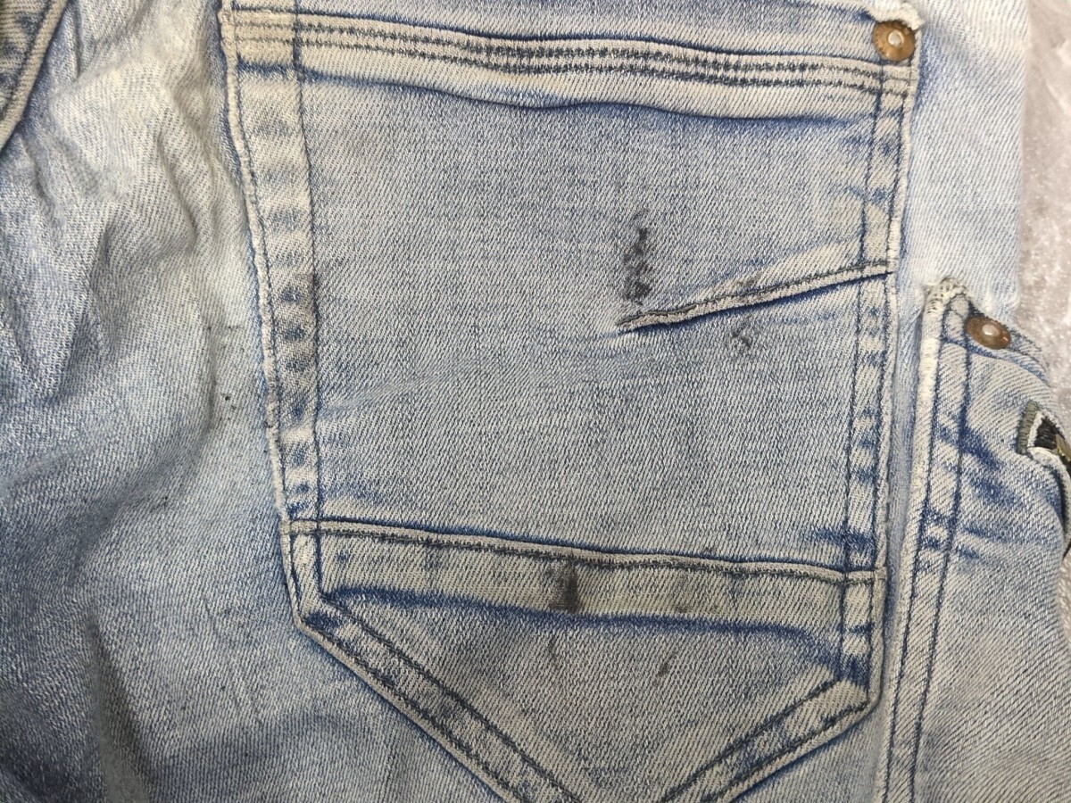 ポケット付近や臀部、臀部サイド付近に擦れキズ穴箇所 汚れ 使用感があります |