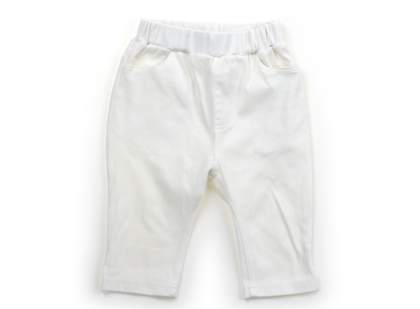 股下実寸は約17cmです。デニム風カットソー生地。ウエストは総ゴムです。左膝に薄く2cmほどの黄ばみ汚れがありますが、まだお使いいただけそうです。左もも1カ所に引っ掛け傷あり。裾脇スリット入り。