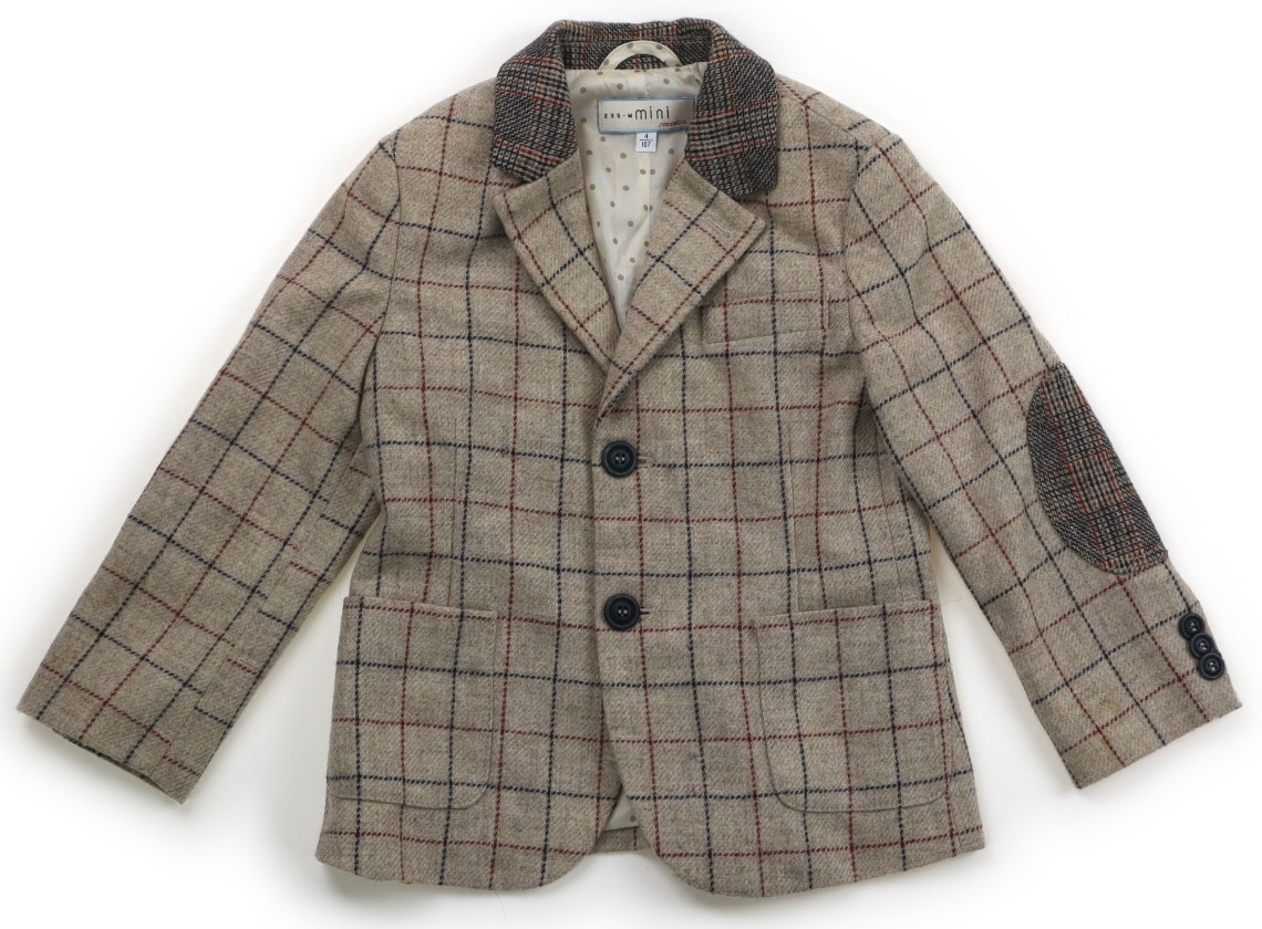 4/107cmサイズ表記。毛・カシミヤ素材でドット柄の裏地付き。肩パッド入り。袖に茶色いシミあり。