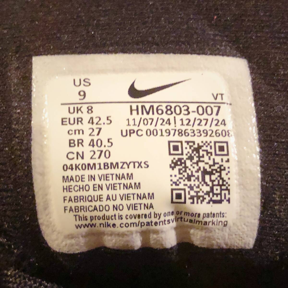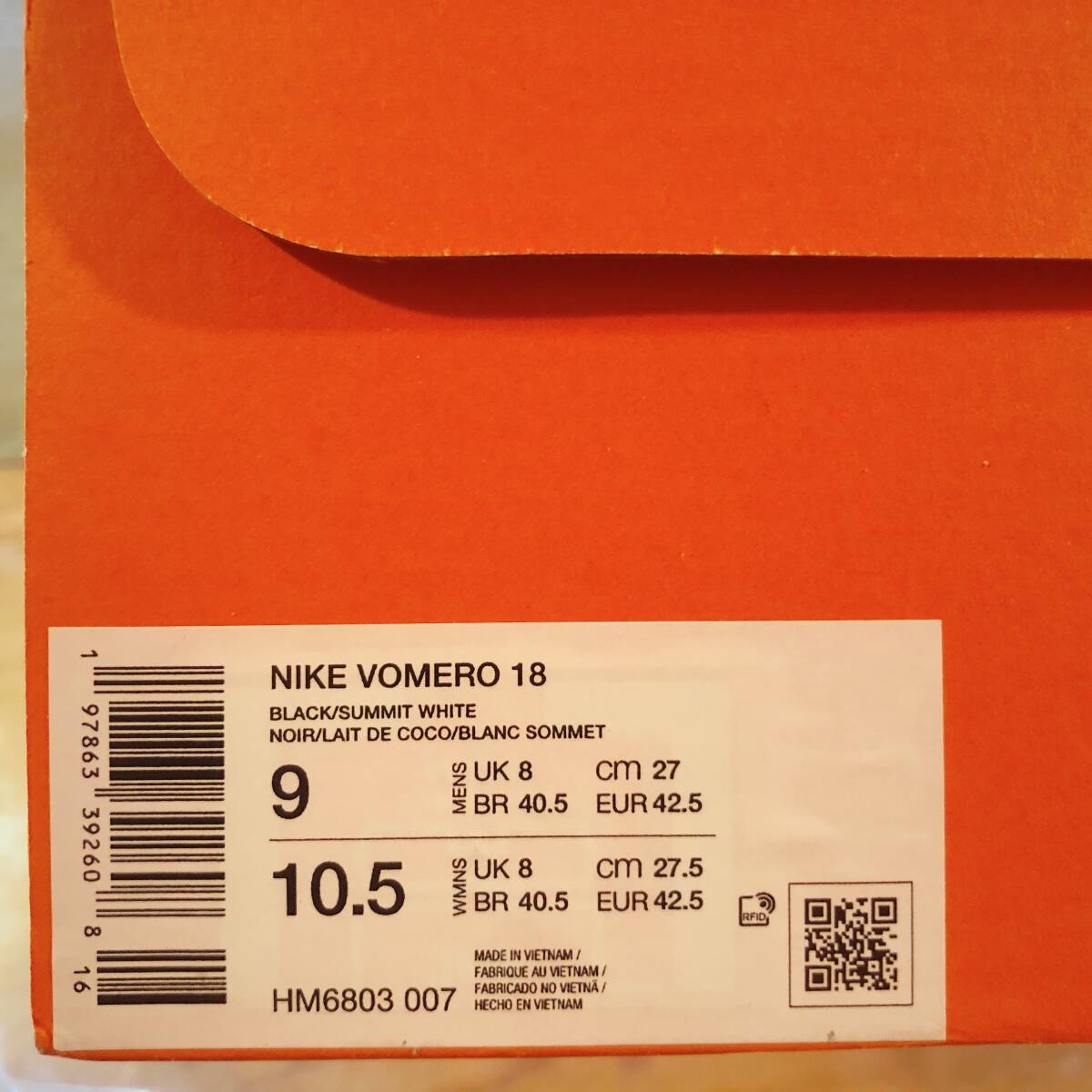 【美品】Nike/ Vomero 18/ 27.0 cm/ ブラック・ココナッツミルク/ ナイキ ボメロ ヴォメロ
