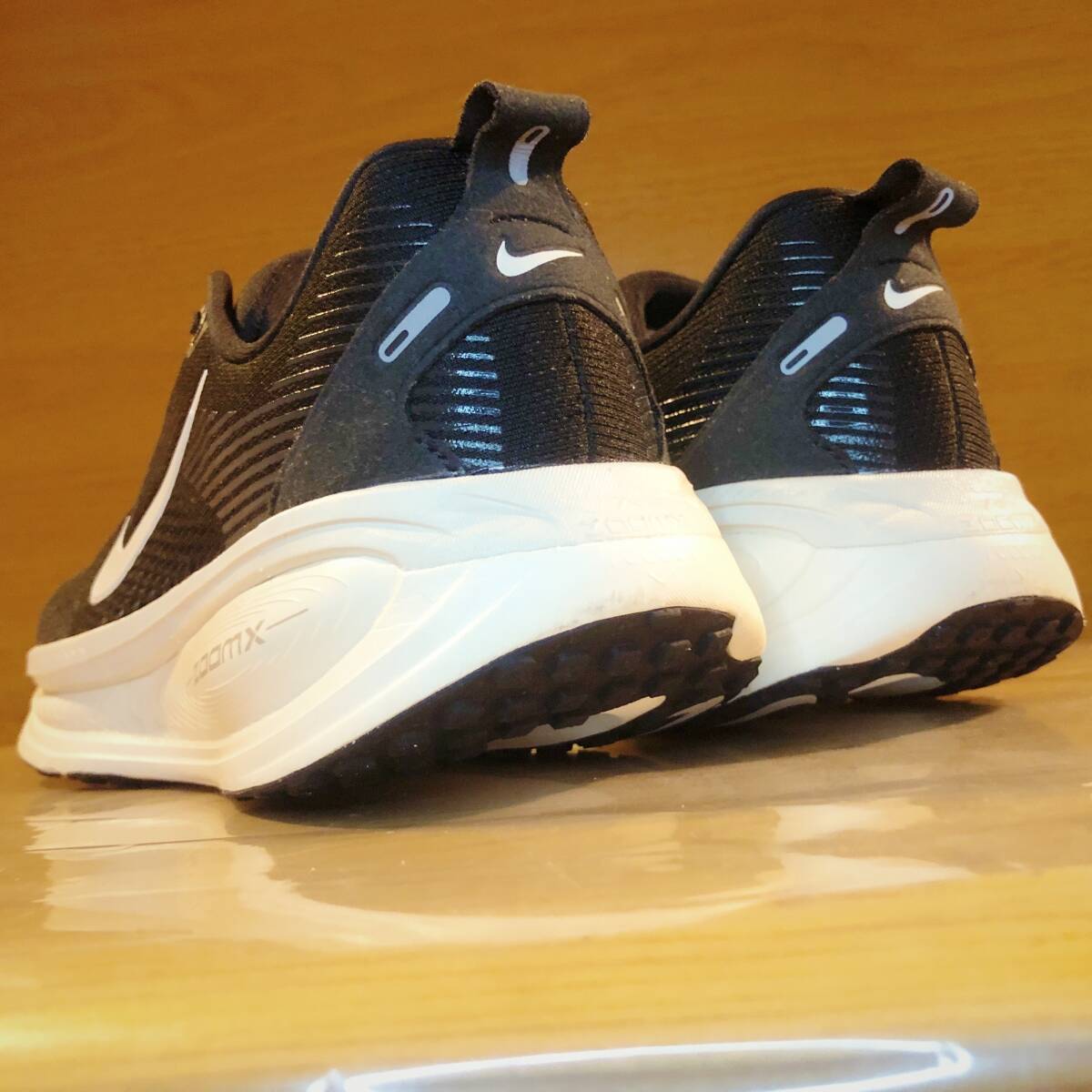 2層構造の作りで、上層には、反発弾性に優れるZoomX、下層には、安定感に富むReactXが使用され、ともにクッション性に優れています。2種類のソール素材の組み合わせが非常に良く、ふかふかのクッションで、足のダメージが少ないのに、しっかり反発が効いてペースも上げられます。