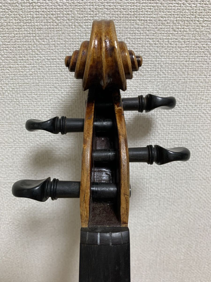 オリジナルがもつ特徴的なスクロール、ダブルパフリング、裏板と側板の材質、サイズなどかなりこだわった作り込み。19世紀中頃の東欧またはフランス製と推測。