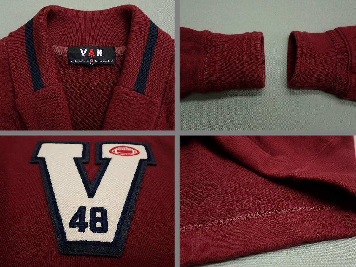 | VAN JAC ヴァンヂャケットのスウェットカーディガンです。長くお使い頂けそうなデザインですね。難有り品ですが普段用などにいかがでしょうか。気になる方はご検討下さい。 | |