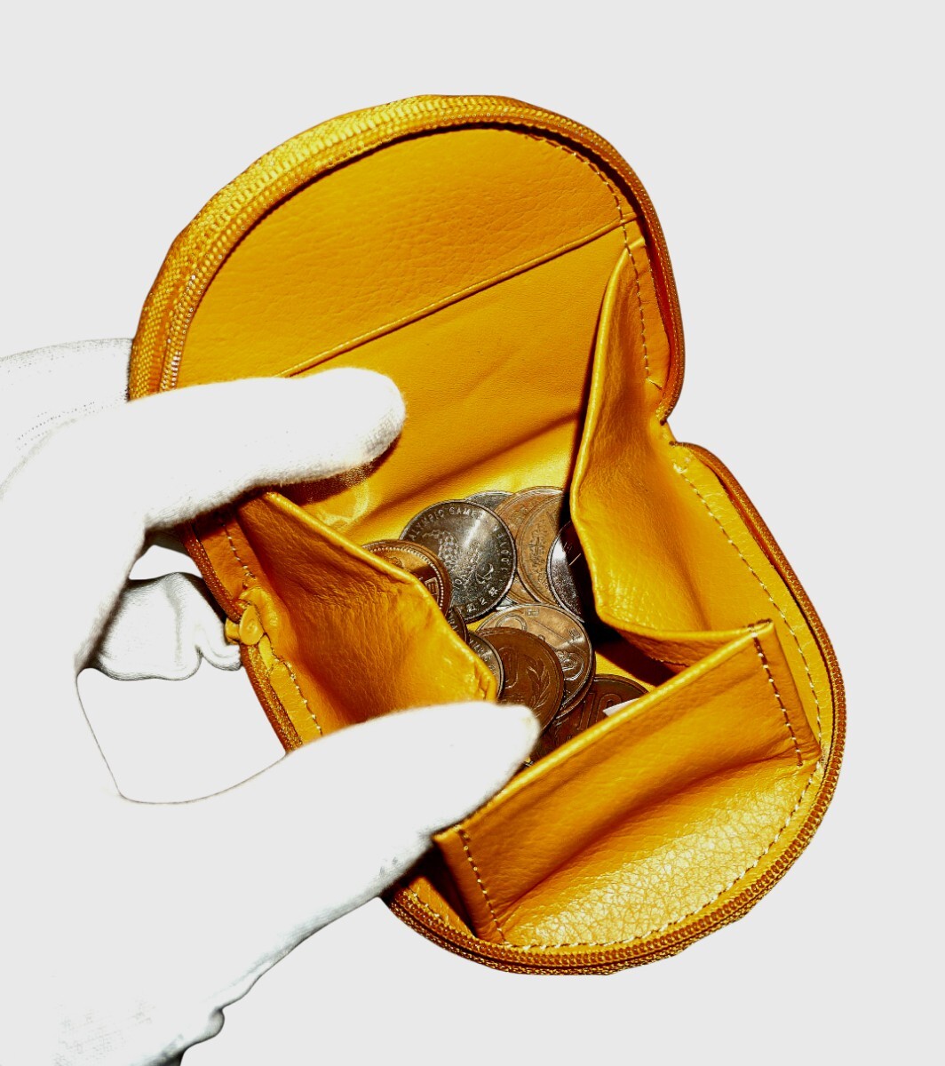 【種類】 (皮革製)馬蹄型コインケース 【材質】 表面・皮革製・内張り・P・V 【サイズ】 幅・約9cm 縦約8.5cm(内部空時) マチ 最厚部2cm 【カラー】イエロー 【商品状態】新品未使用 ★掲載写真は光等の加減で実際の商品とは異なる場合が有ります。 | ||