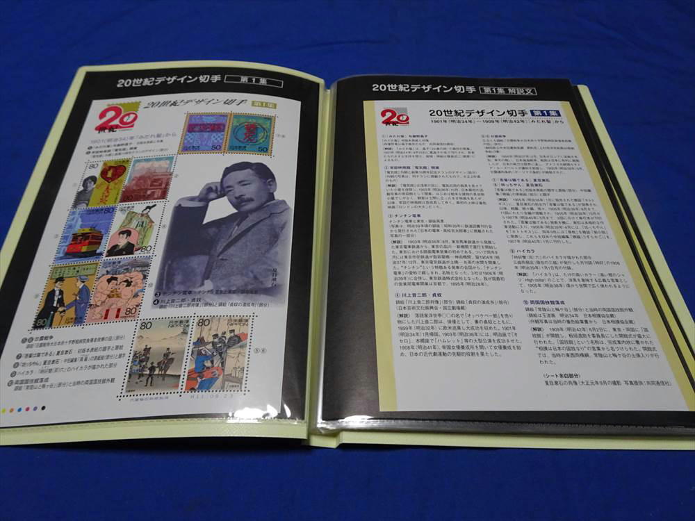 U722a 20世紀デザイン切手フォルダ1-17集未使用シート,解説書,熊本中央2000.1.1スタンプ(H11-12)