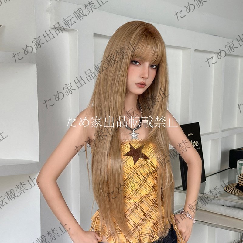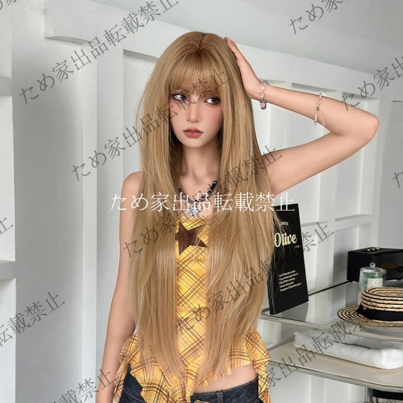 新品人毛 ロングストレート アッシュブロンド ハーフ顔 つむじ部分手植え 自然に見えますフルウィッグ かつら ヘアアクセサリー