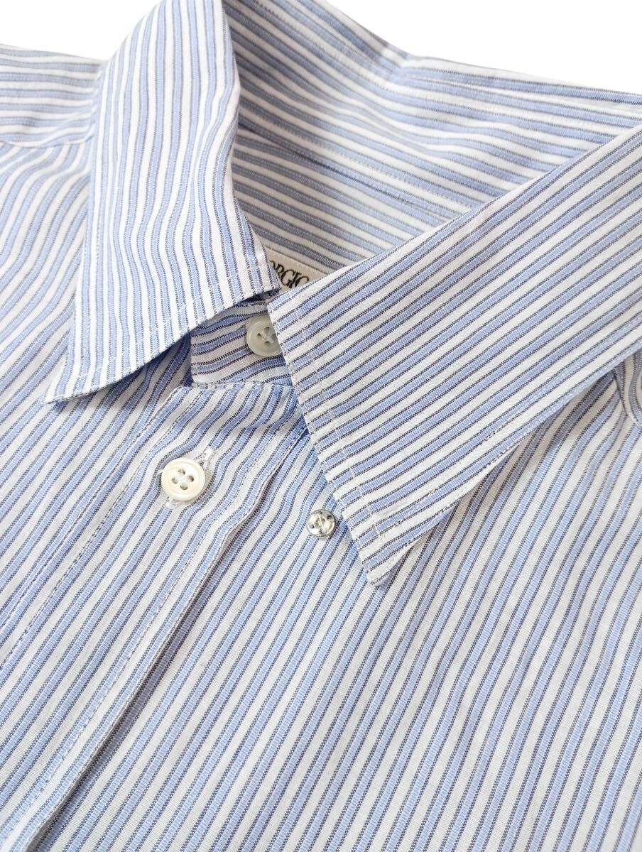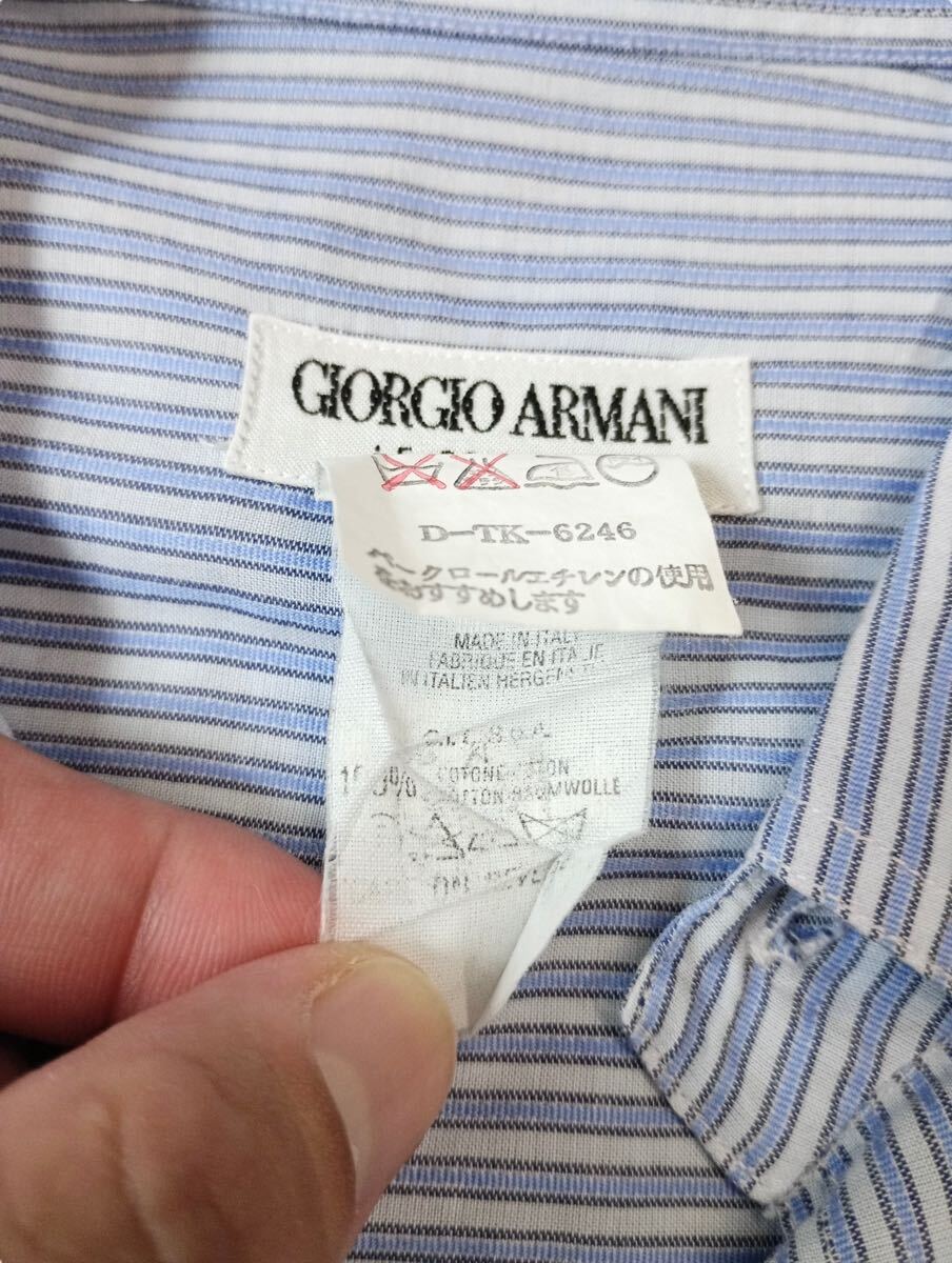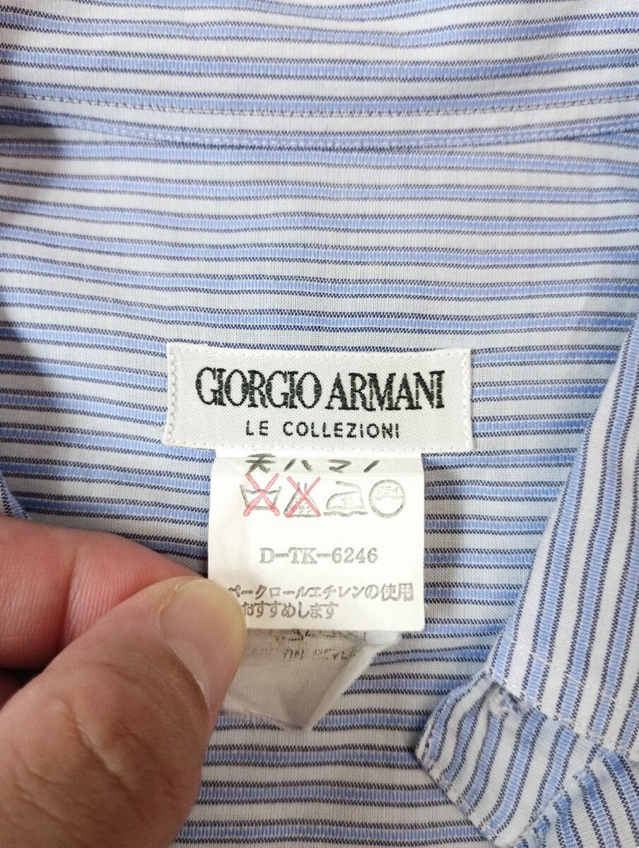 (D) VINTAGE GIORGIO ARMANI ヴィンテージ アルマーニ イタリア製 ストライプ 長袖 シャツ 38/15 ブルー トップス