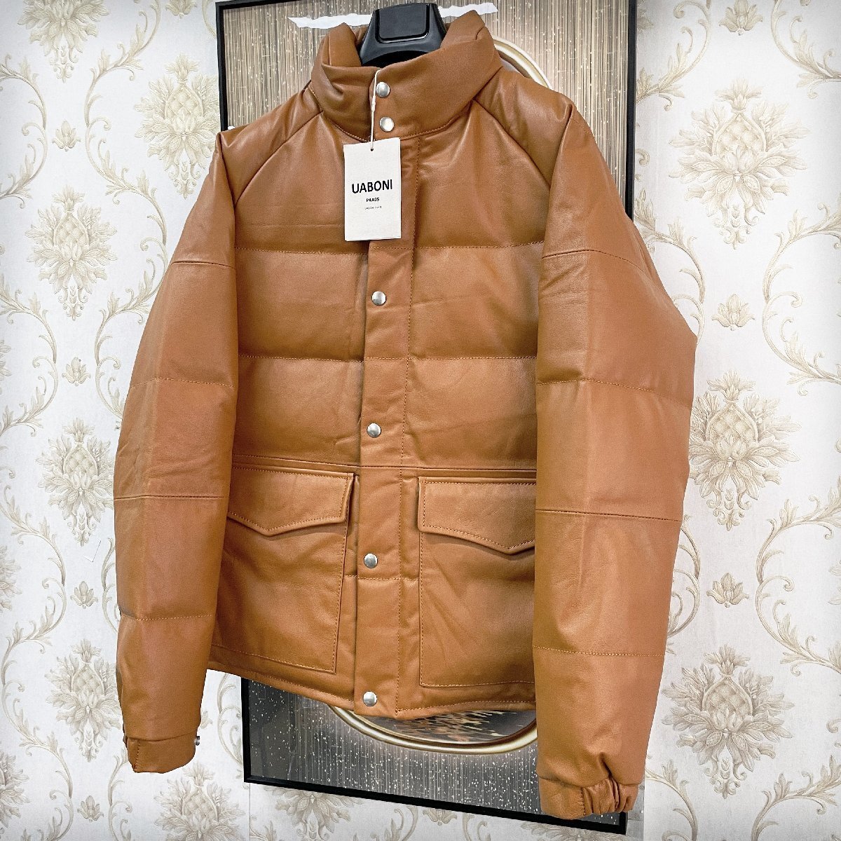 最高峰EU製&定価23万◆UABONI*Paris*極地防寒レザー・ダウンジャケット*ユアボニ*パリ発◆最上級羊革・ムートン グースダウン90% 2XL/52サイズ
