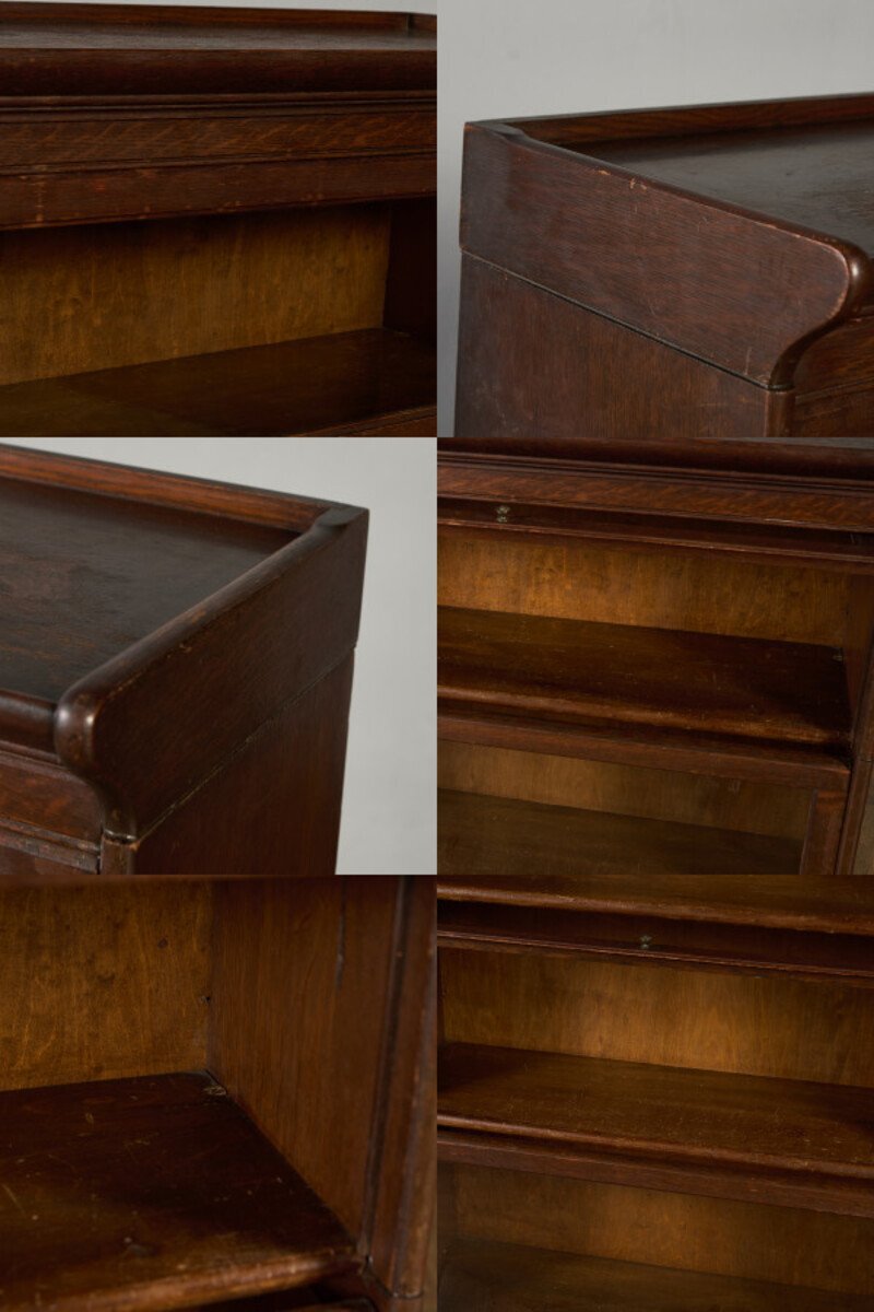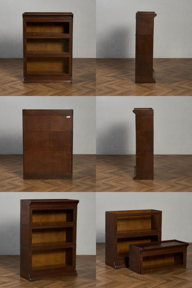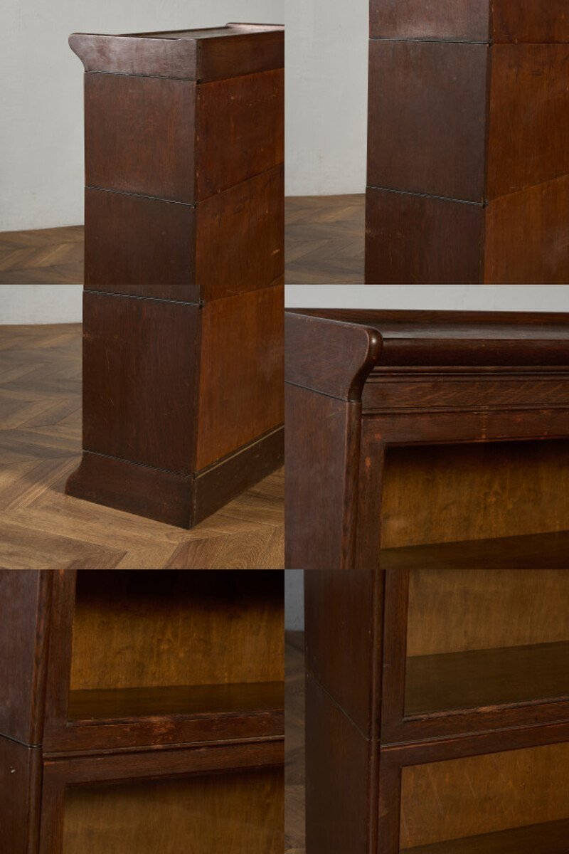 オーク材が使用された、英国アンティーク スタッキングブックケースです。 使い勝手の良さとデザイン性により、当時から非常に人気のあったブックケース。扉部分は上に持ち上げ、中に押し込んで収納できるフラップ式になっており、漫画本や雑多な書籍、雑貨や小物の収納に適しています。また、簡単な積み上げるタイプの組み立て式になっており、不要時の収納性に優れている他、手入れの際も細部まで楽にお掃除ができます。 |