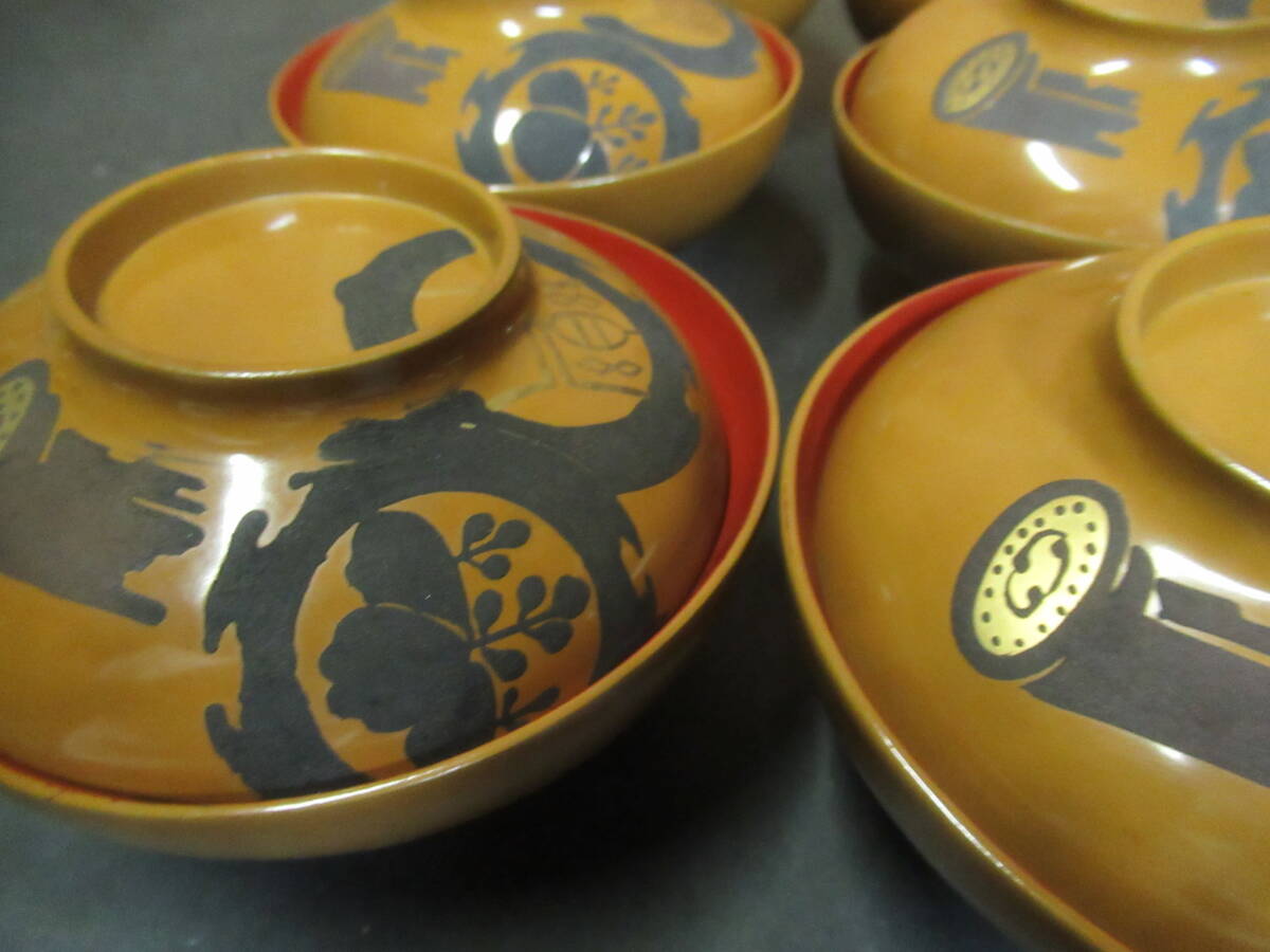 輪島塗 吸物椀 漆器 木製 蒔絵 時代物 だいたい美品 9客