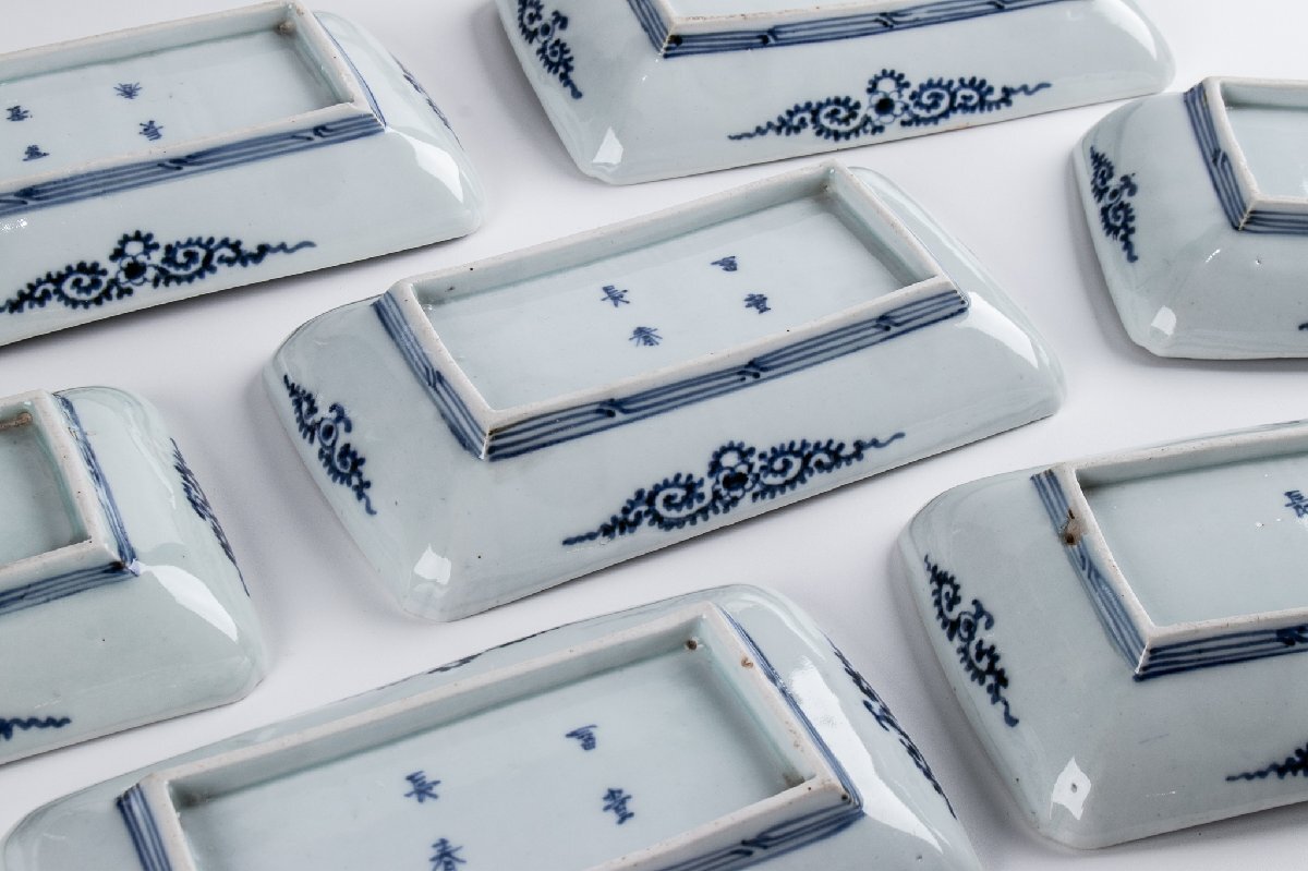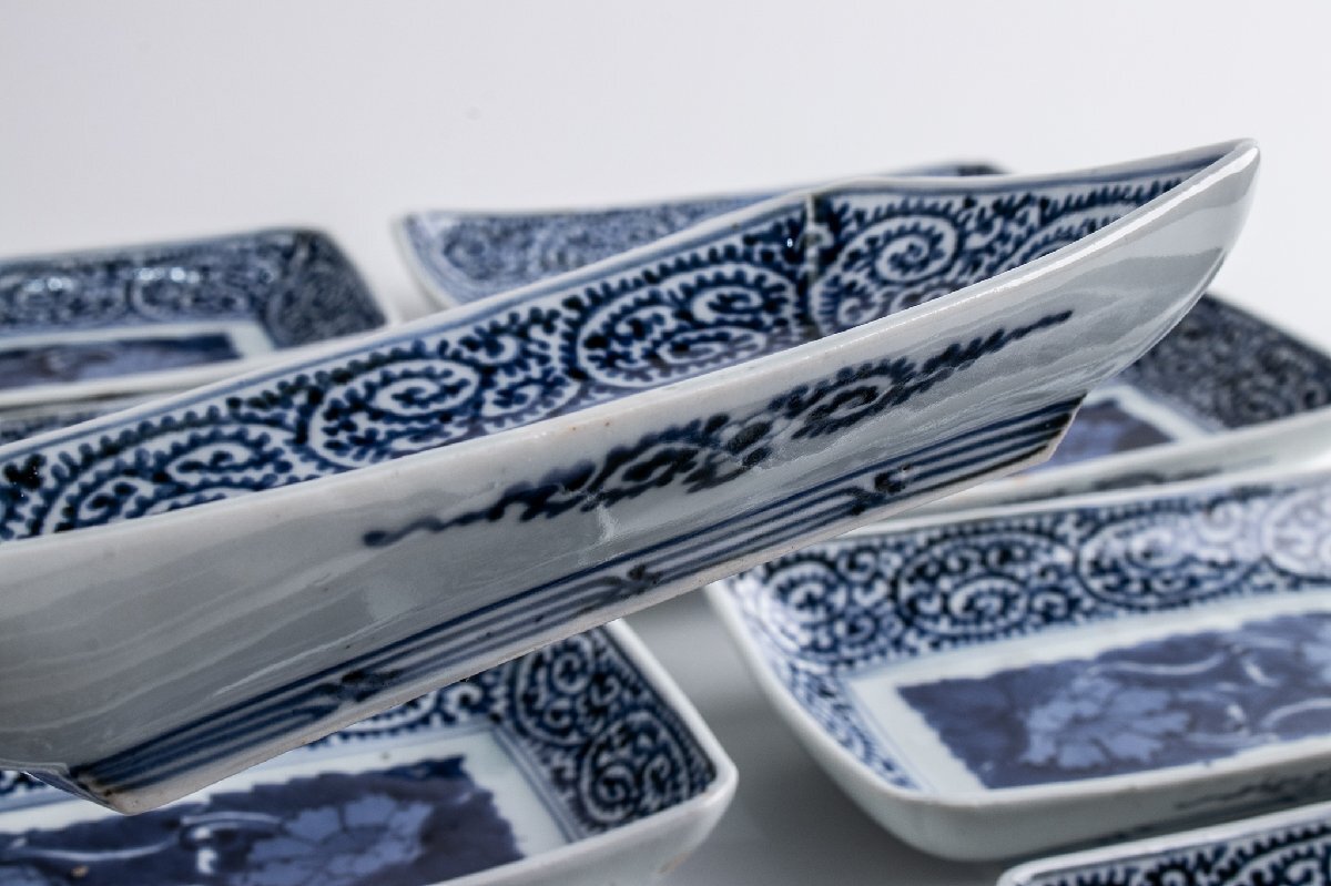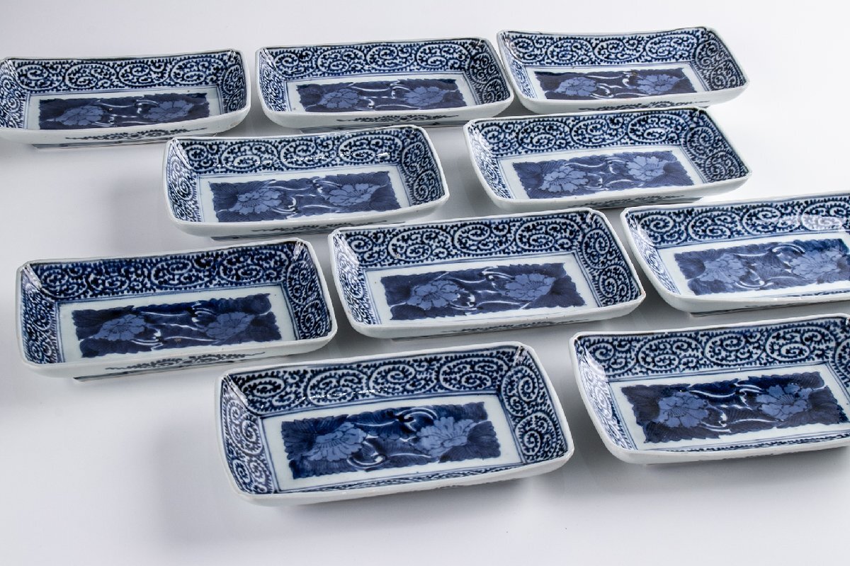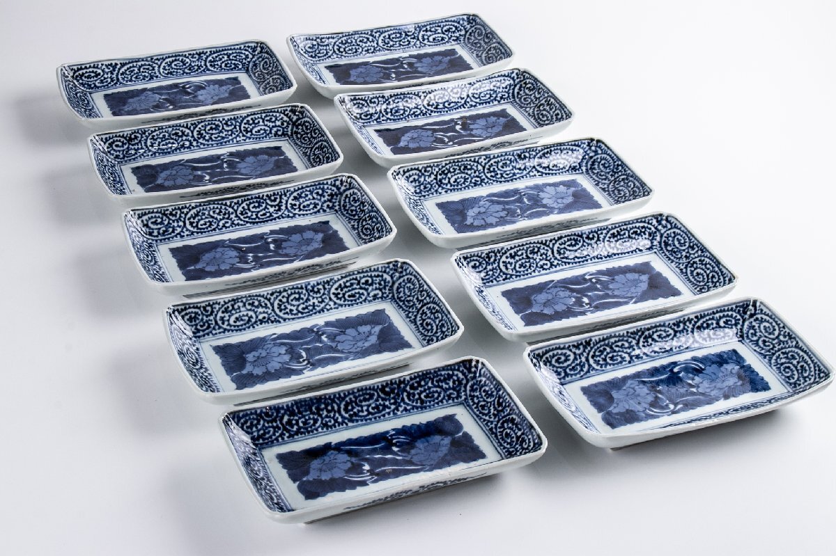 【うつわ】 古伊万里 染付牡丹蛸唐草文長皿 10客 江戸後期 E2293A バラ売り可能です 古美術 骨董 古玩 陶磁器 和食器 懐石 料亭