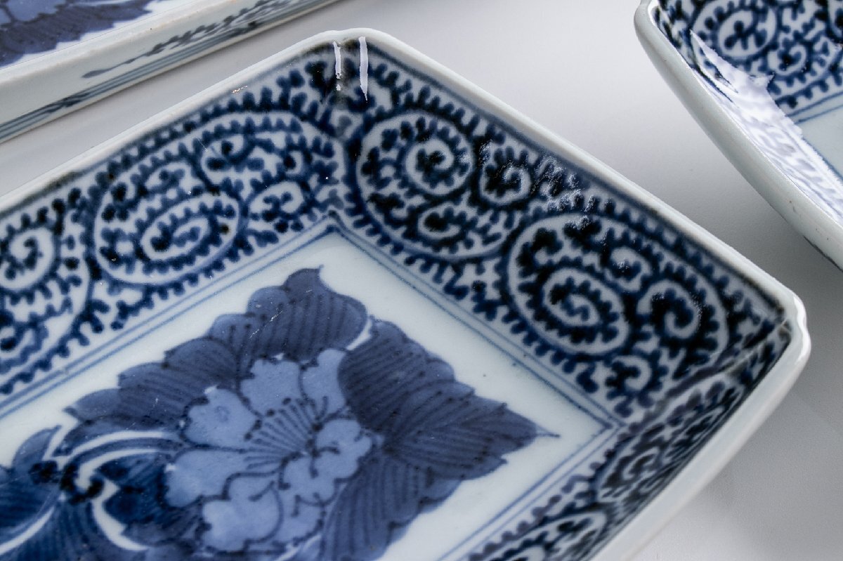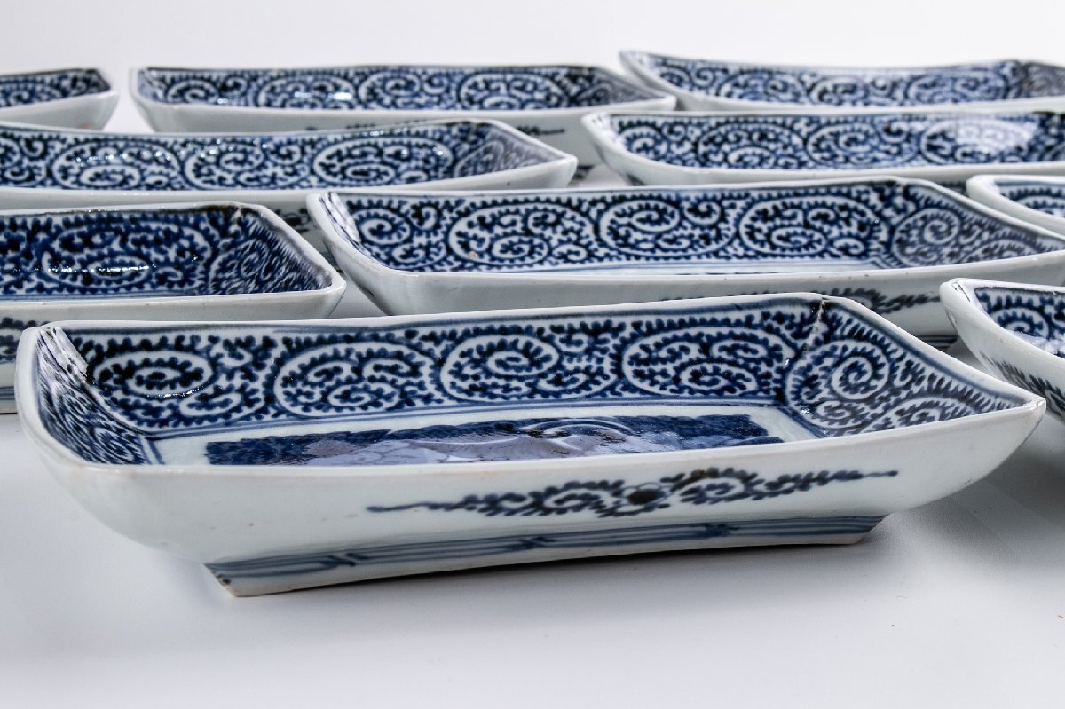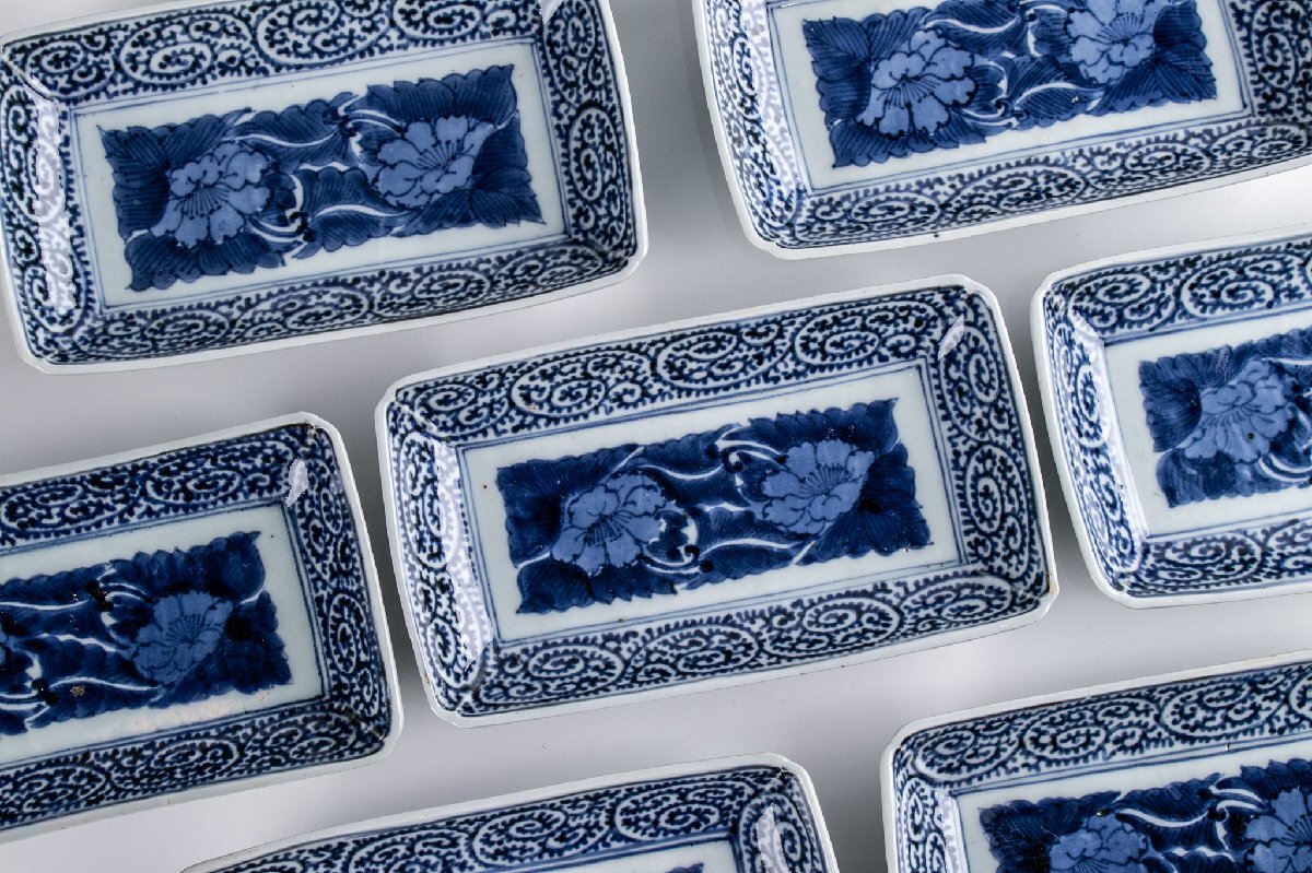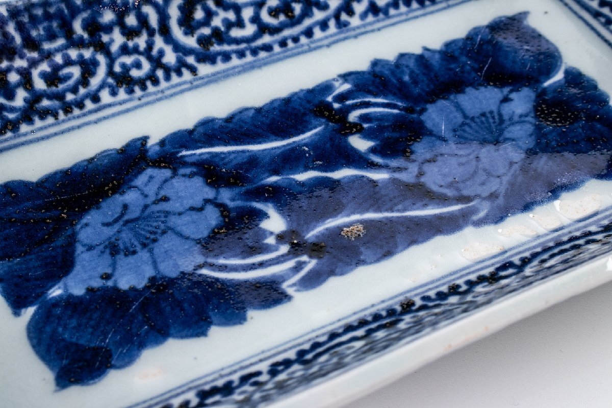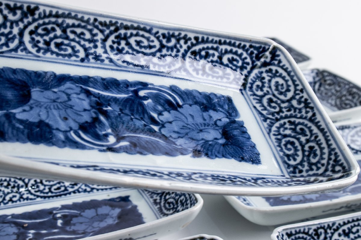 【うつわ】 古伊万里 染付牡丹蛸唐草文長皿 10客 江戸後期 E2293A バラ売り可能です 古美術 骨董 古玩 陶磁器 和食器 懐石 料亭