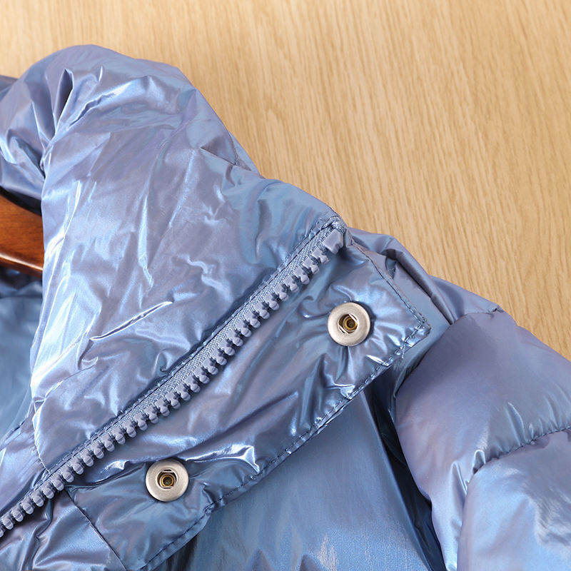 ・視線を惹きつける光沢素材仕上げ:光沢感のあるシャイニー素材が、光の当たり方によって美しく輝き、周囲と差がつくおしゃれな一着。夜間のコーデにも映える存在感。