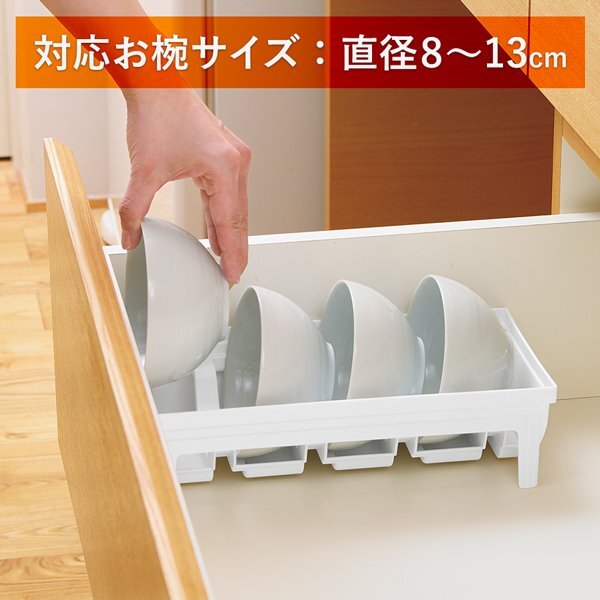 段差が付いているので、お椀の深さが違ってもまっすぐ立てて収納できます。