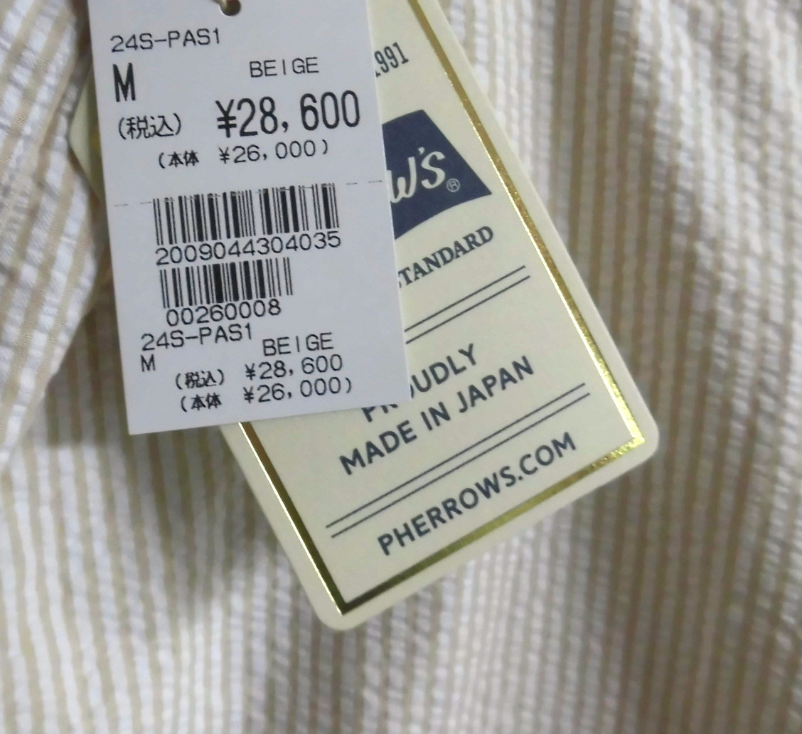 ◆新品タグ付 定価2.8万 PHERROW'S フェローズ 24ss シアサッカー イージースラックス トラウザーパンツ M 24S-PAS1 2024年春夏モデル