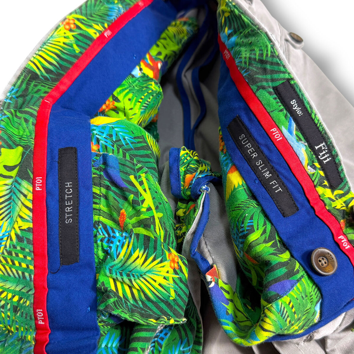 商品について:PT01(ピーティーゼロウーノ)の「Fiji」スーパースリムフィット ノープリーツパンツです。 ガーメントダイ(製品染め)による柔らかく奥行きのあるグレーの色合いが特徴。スーパースリムフィットで脚を美しく見せるテーパードシルエットは、ジャケットスタイルやニットとのコーディネートに最適です。 ノープリーツ仕様により腰回りはすっきりと見せつつ、ストレッチ素材で快適な穿き心地を実現。ビジネスからカジュアルまで幅広く活躍する、イタリア製の上質パンツです。