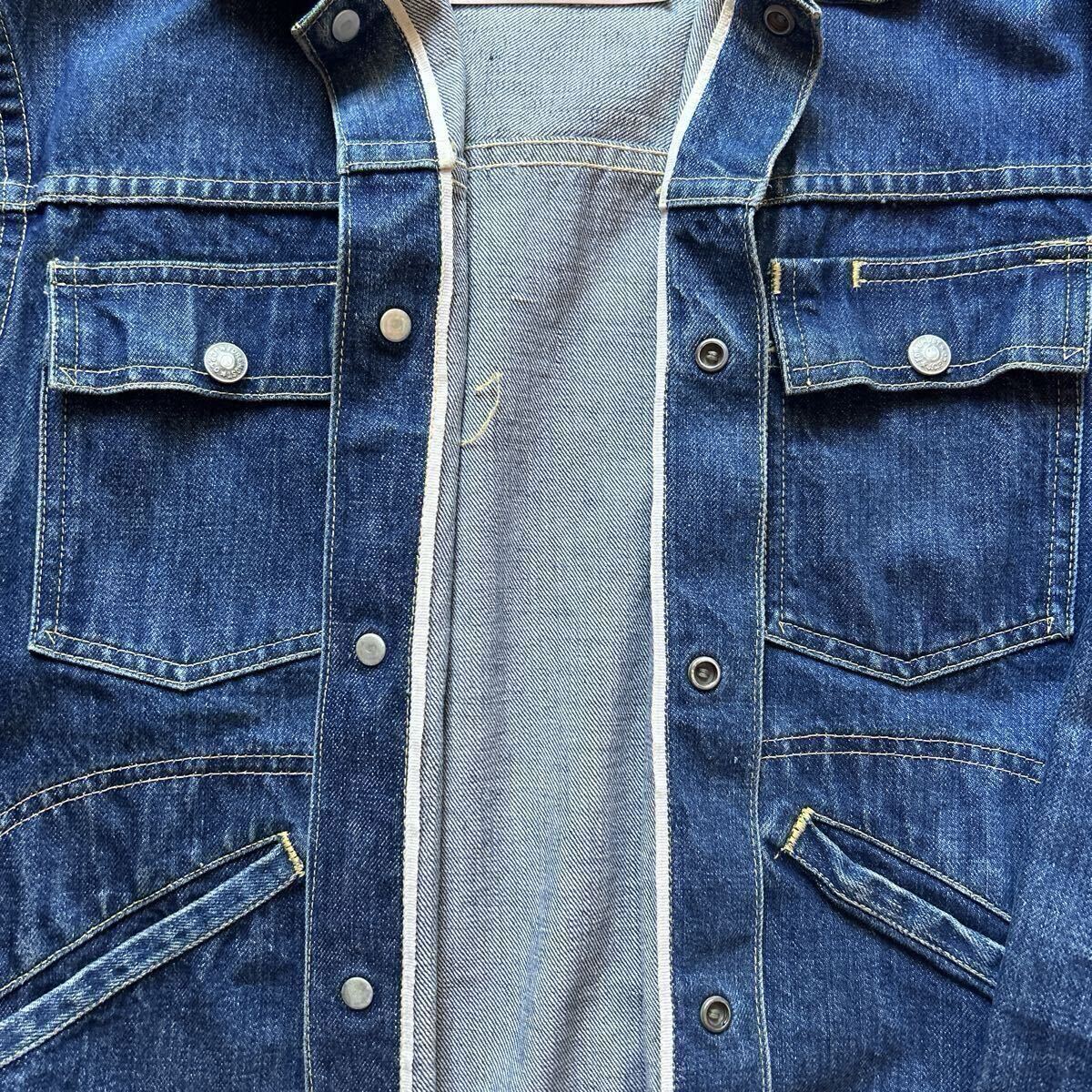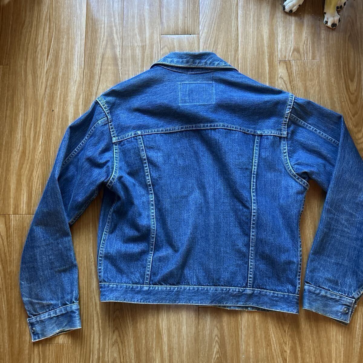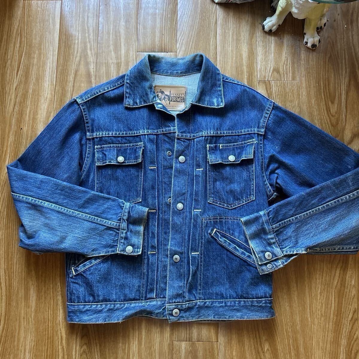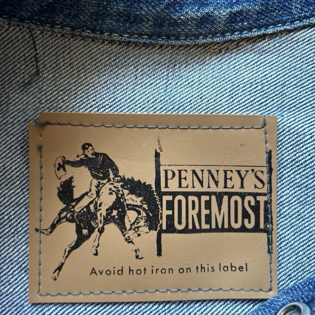 60年代製とみられるペニーズForemost のデニムジャケットです。リーバイス2ndによく似たデザインとサイズ感でフロントには赤耳デニムが使われています。スナップボタン、ステッチ、ビニールのパッチ等全て揃っています。特にほつれやリペアもありません。イエローステッチの色も鮮やかです。肩幅50センチ リーバイスの38より少し小さめの着用感です。