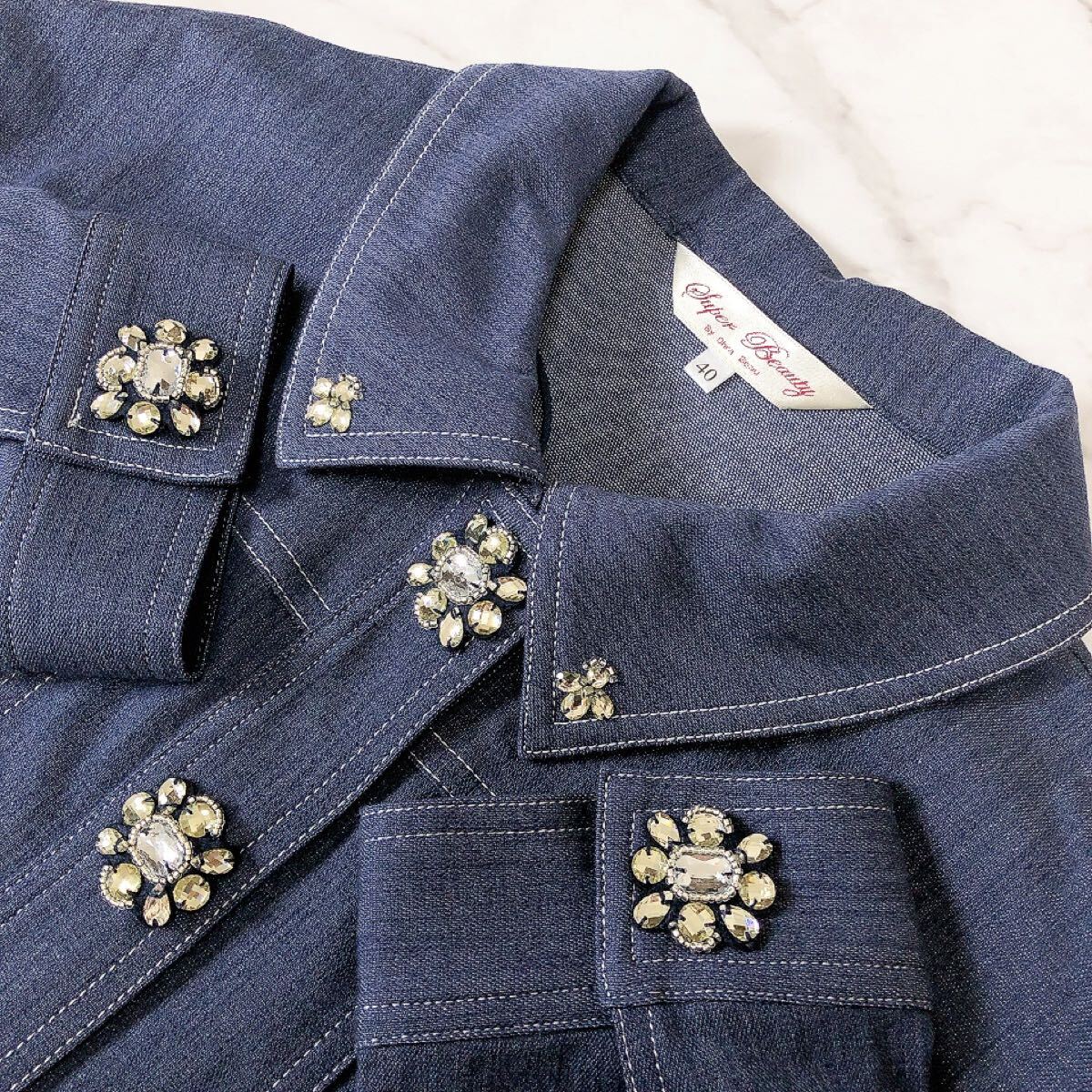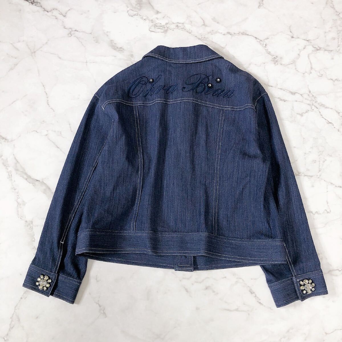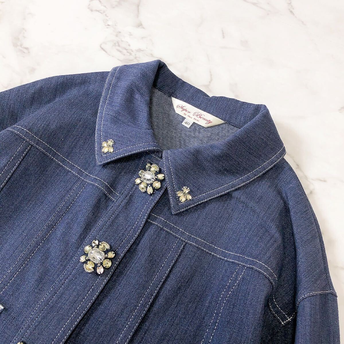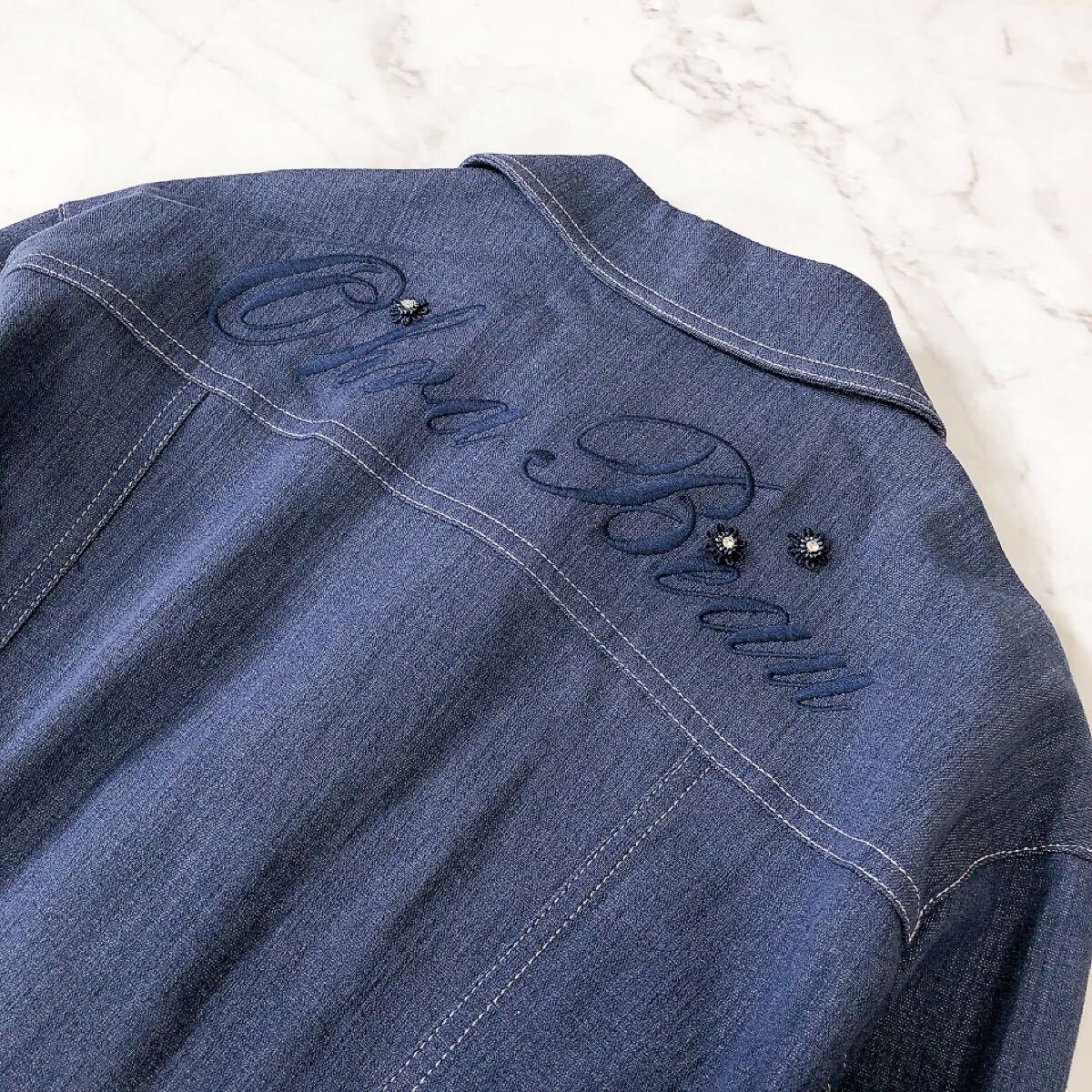 ビジューボタンや刺繍、リボン装飾が華やかなデニムジャケット