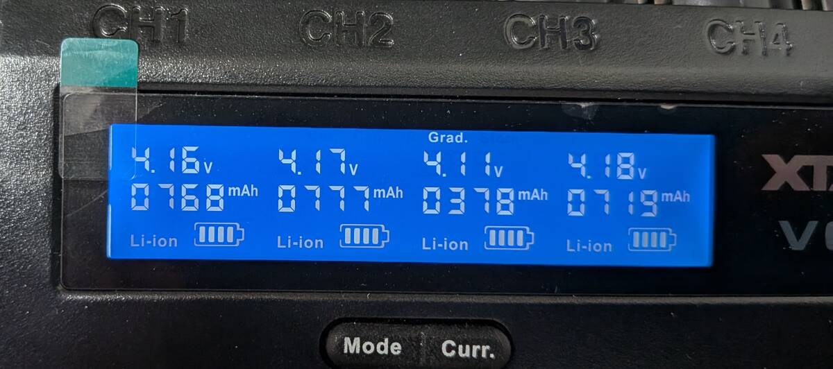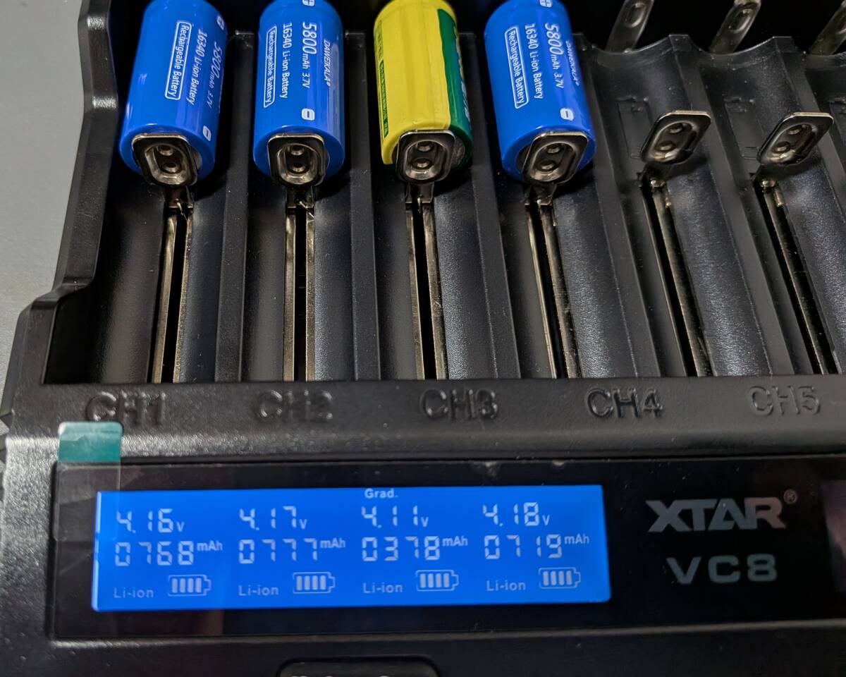 ★エクスターの長期保管準備機能で充電し、容量を測りましたが、3本共700mAh台の容量です