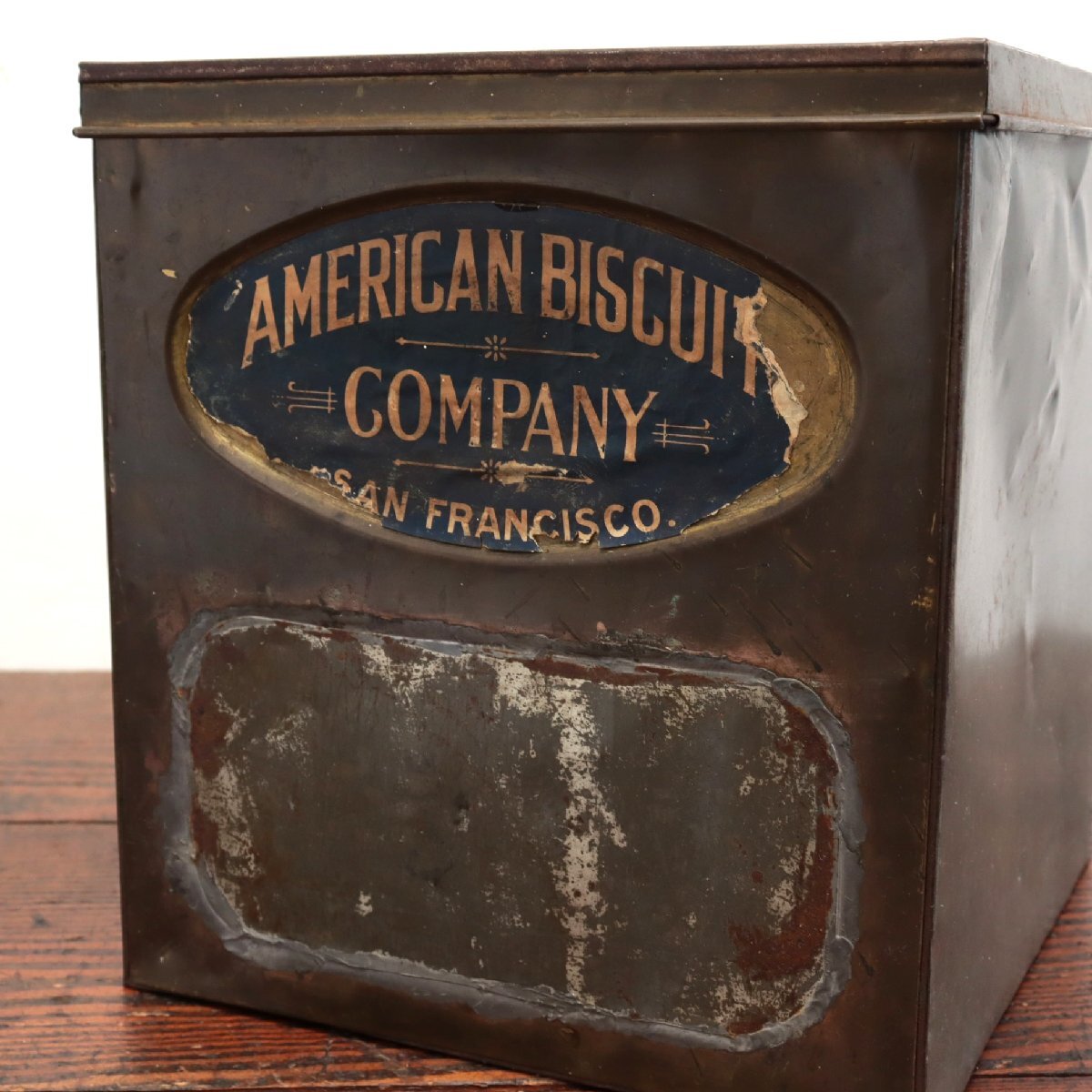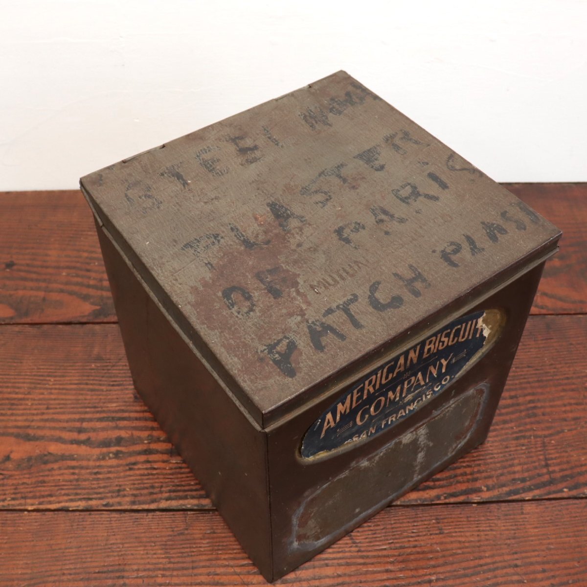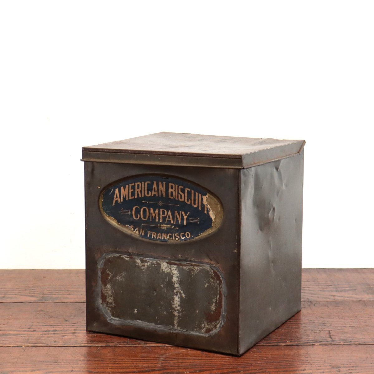 | 商品説明 explanation | 「American Biscuit Company」のメタルボックスです。 ロゴやペイントの雰囲気が良く、経年によってヴィンテージらしさ満載です。 小物入れやディスプレイ小物などにいかがでしょうか。 |