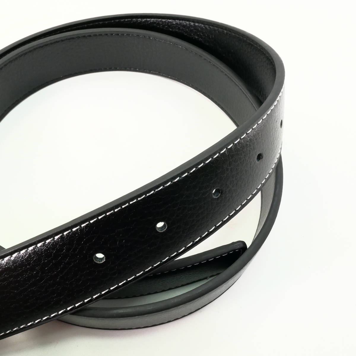 黒ベルト、表面は白いステッチ、裏面は同色の黒いステッチ、お好みで使い分けられます。