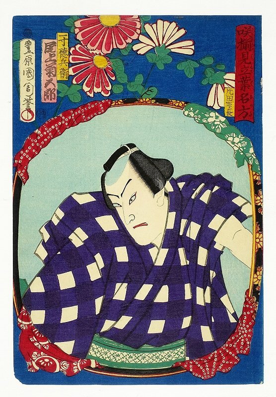 咲揃見立葉名方 一寸徳兵衛 尾上菊五郎 (役者絵 鏡絵) 国周画