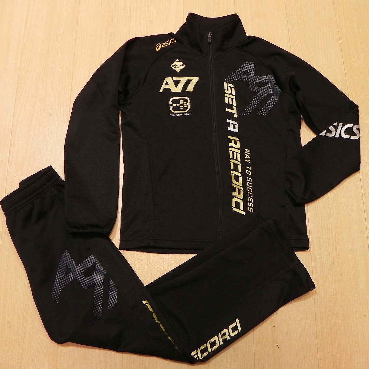 ★ 良品 ☆ アシックス A77 ☆ セットアップ ジャージ 上下セット S ☆ 黒 ブラック 運動 スポーツ 中古 古着 ★a
