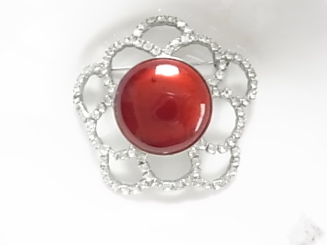 ビンテージ/ヴィンテージ オックスブラッドトーンの赤色系のカボションカットストーン調 ラインストーン輝くお花形の大き目ブローチ★