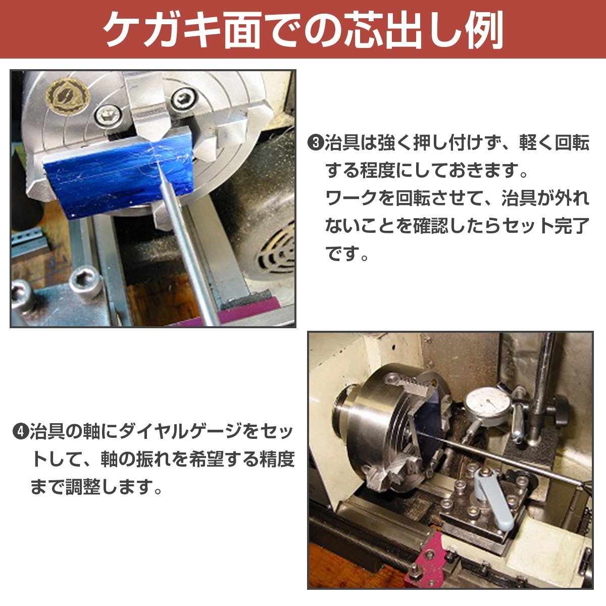 すべての爪が同時に同じだけ動く仕組みになっているので、容易に被削材の中心を出すことができます。