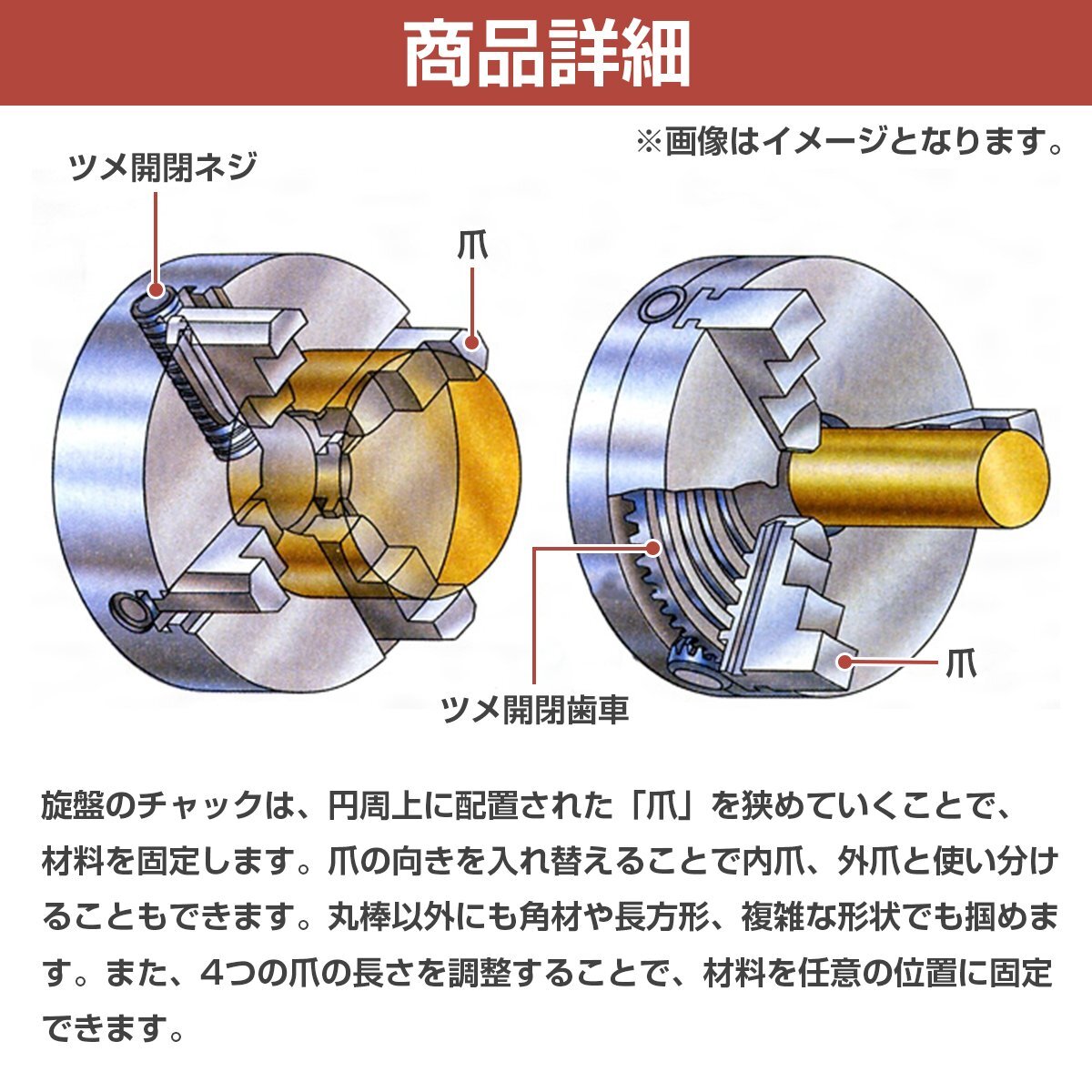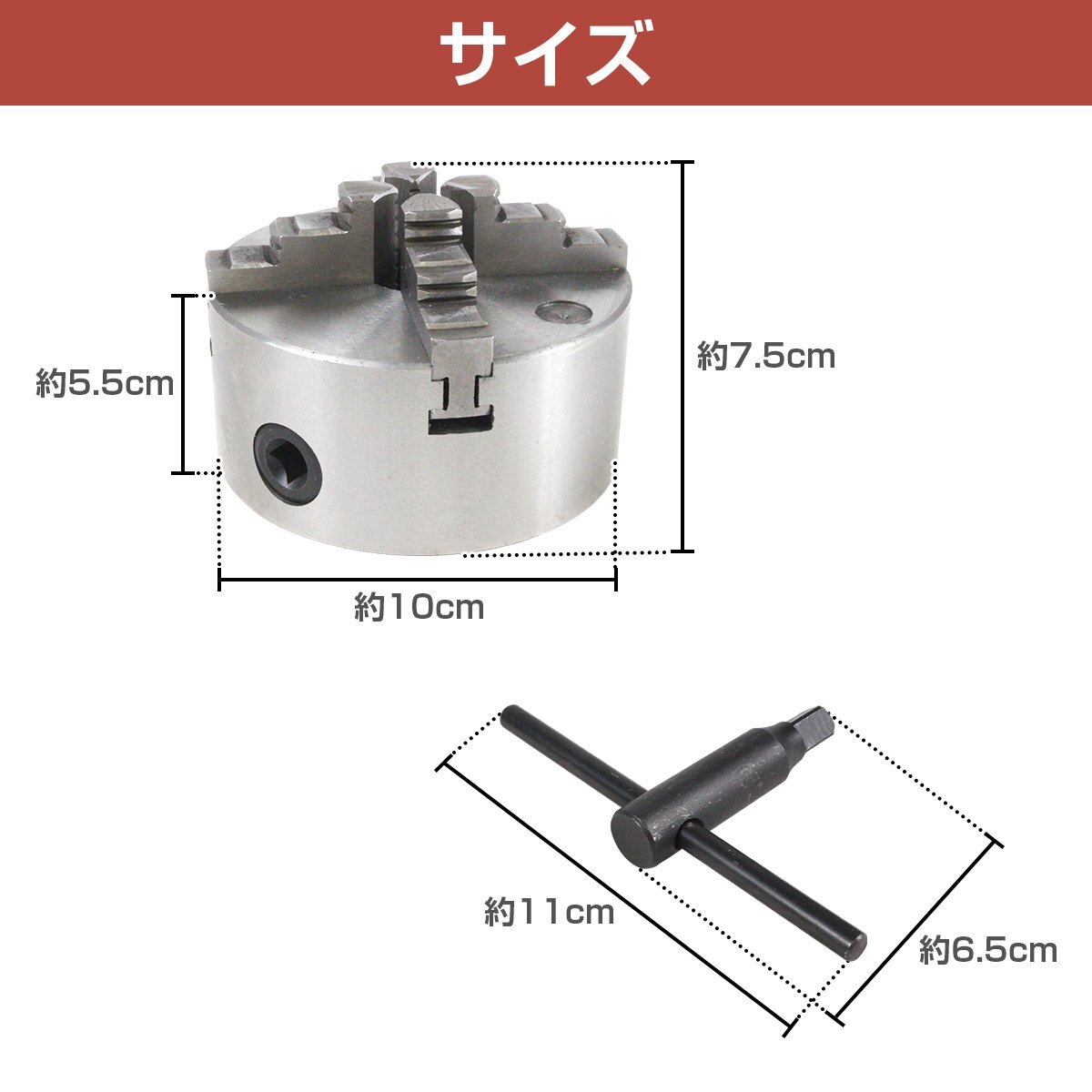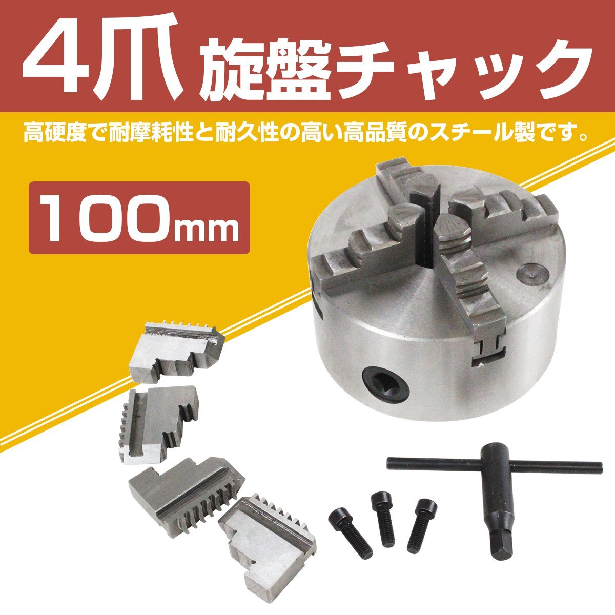 4爪 旋盤チャック スクロールチャック ハンドル付き フライス盤 切削工具 φ 100mm 内爪 外爪 旋盤 卓上旋盤 小型