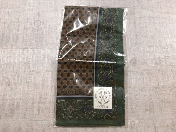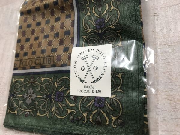 新品タグ付き ELTON UNITED POLO CLUB エルトンユナイテッドポロクラブ トラッド レトロ ハンカチ メンズ 日本製 綿100% 緑 茶色 です。