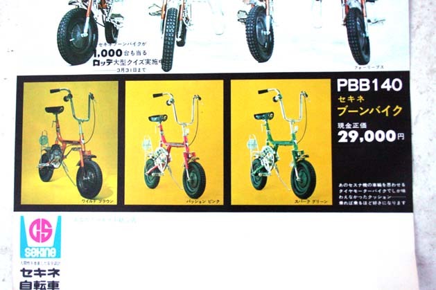 1970年代の、セキネ自転車、ブーンバイクのカタログパンフです。