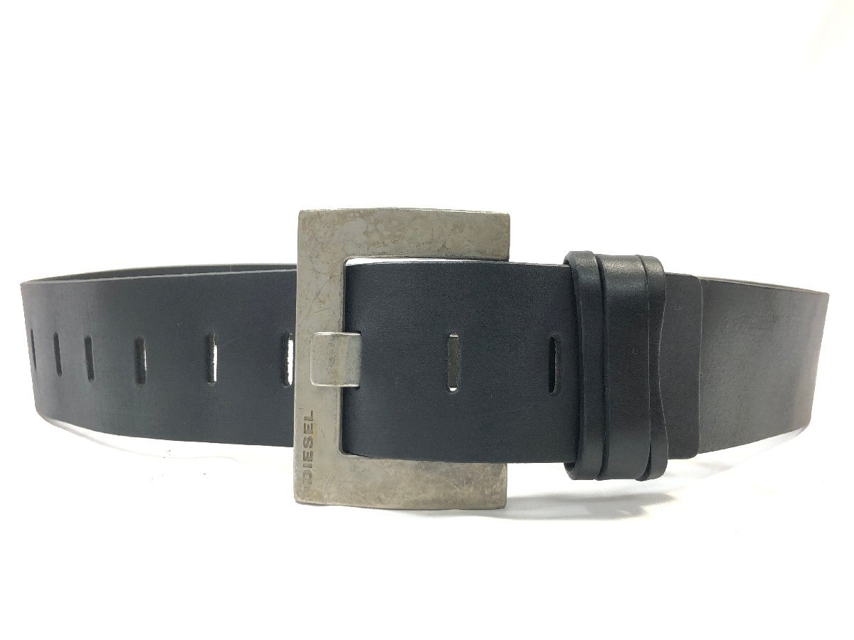 美品 【ディーゼル DIESEL】 レザー 本革 太ベルト (メンズ) size36 ブラック ◇30ME7756◇