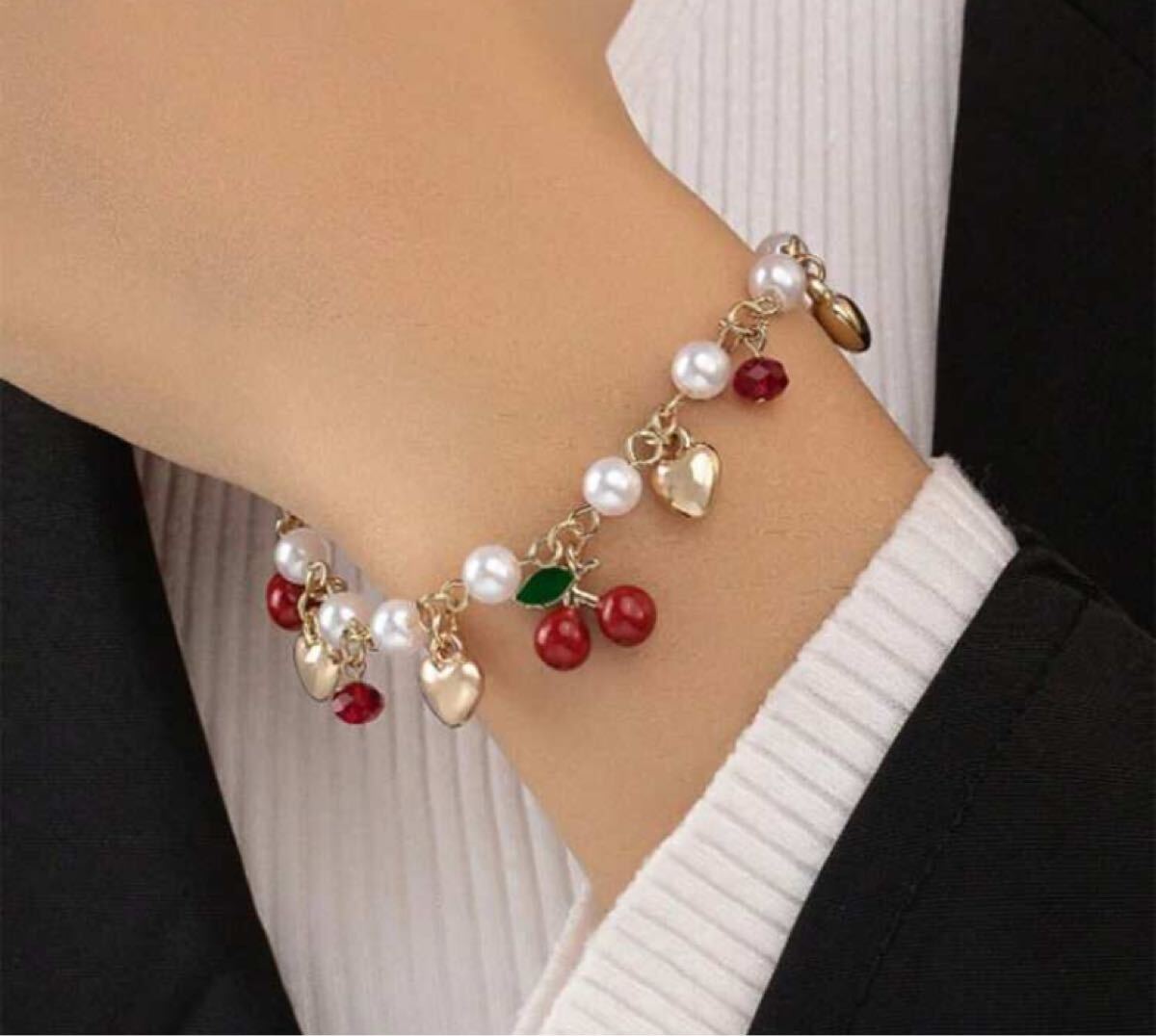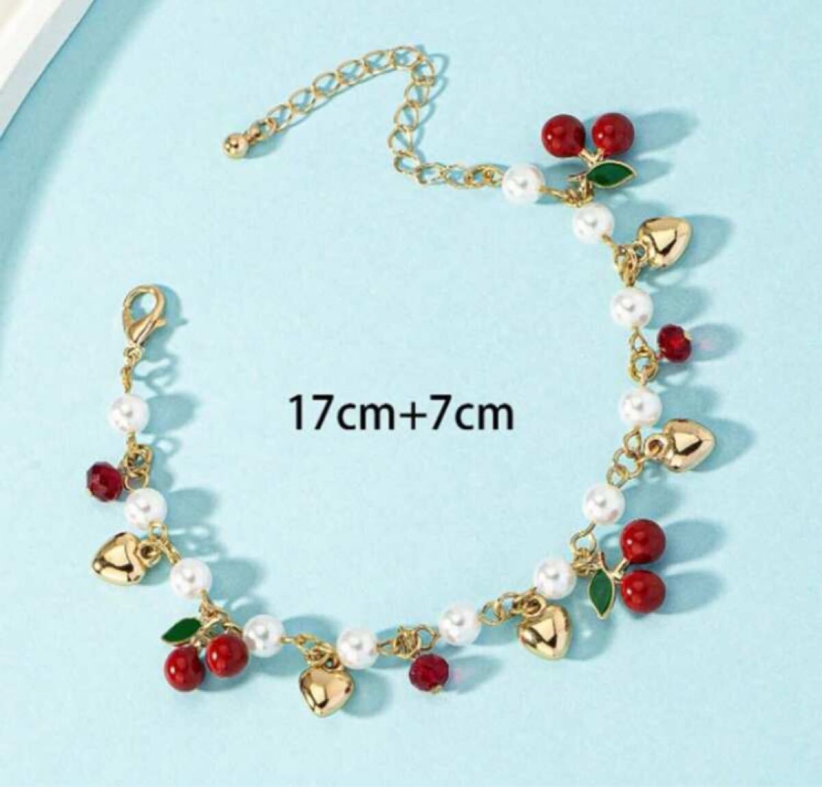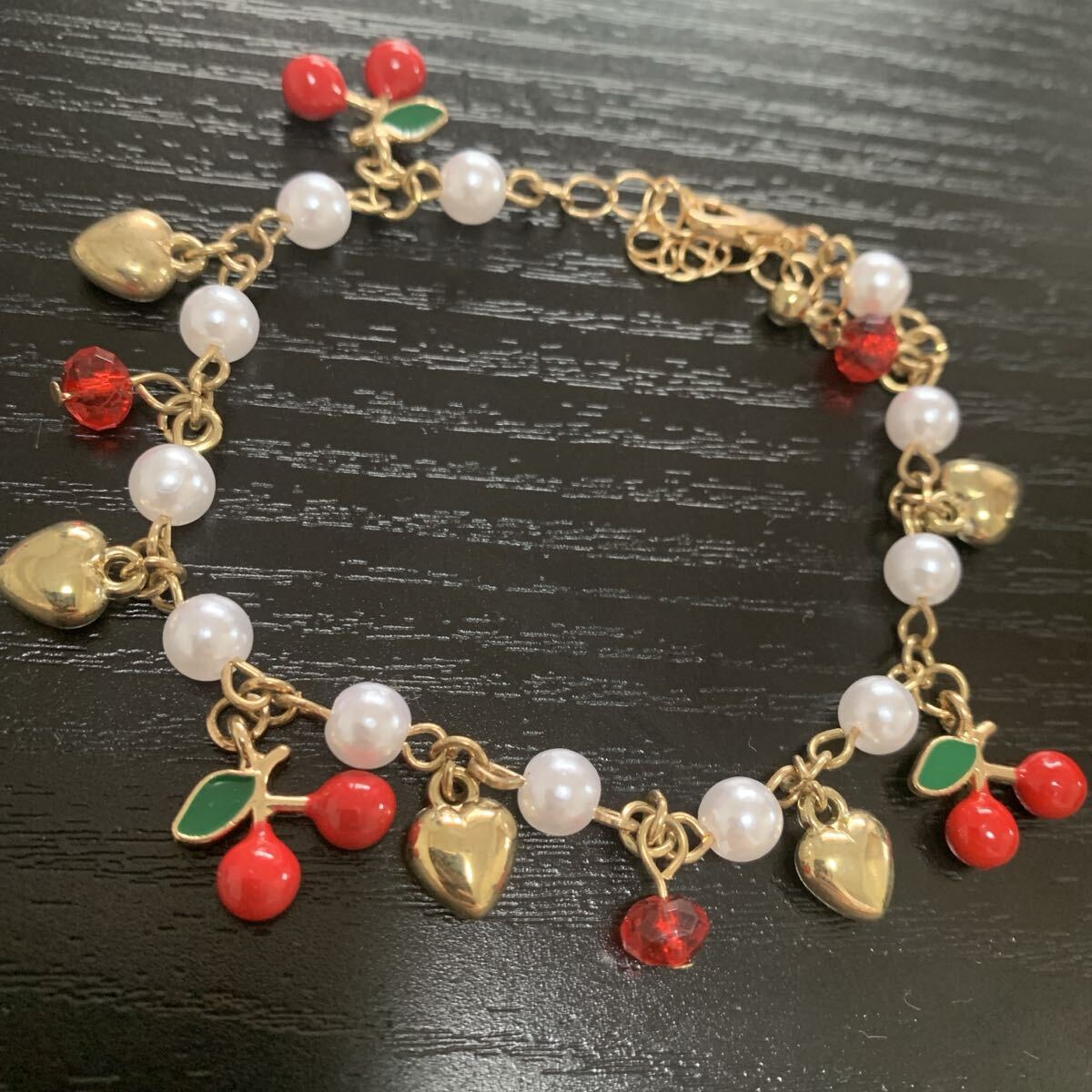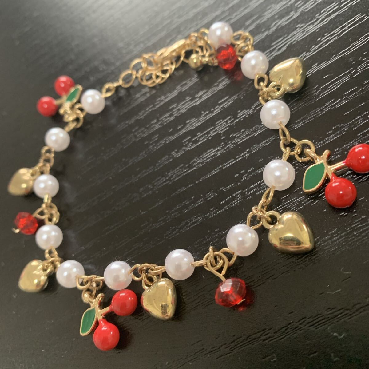 レディース アクセサリー ジュエリー ブレスレット バングル アクセ メルヘン ロリータ 赤 レッド フェイクパール パール ホワイト 白 さくらんぼ チェリー 春
