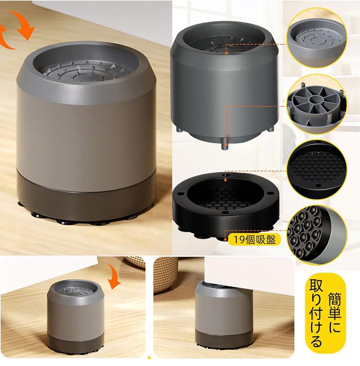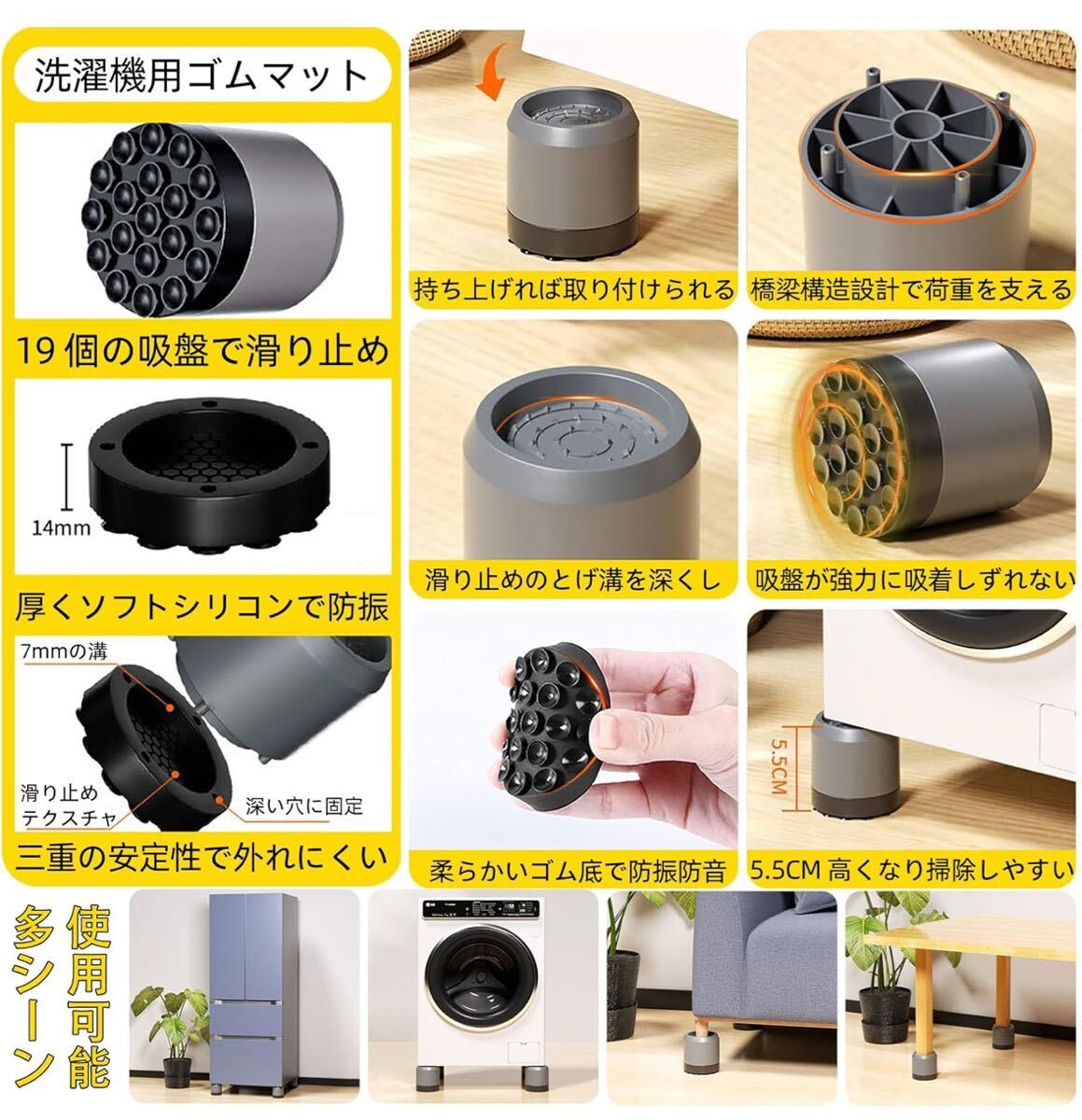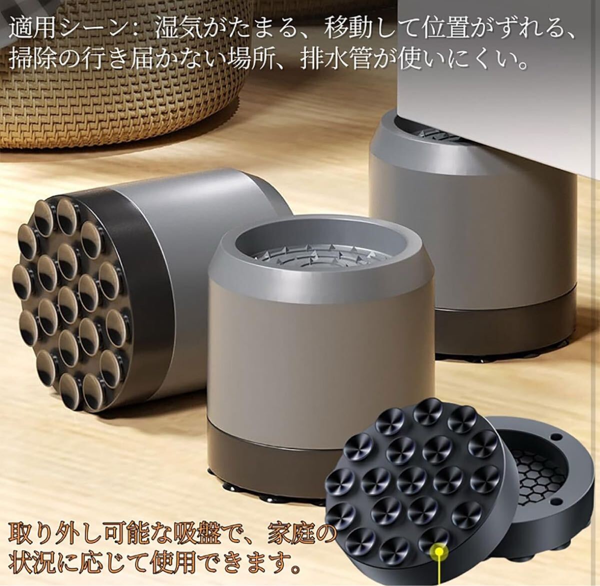 洗濯機以外にも、冷蔵庫や家具、テーブルの脚など様々な場所に使用可能で、滑り止めや騒音対策に最適です。
