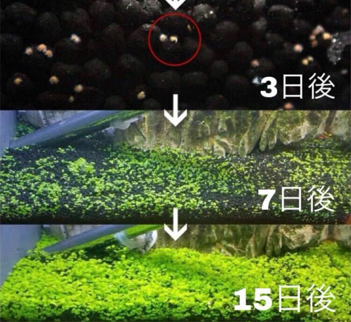 種は水に触れると粘液状になりますので、水槽に直接投入はせずに、必ずソイルや流木などに発芽させ成長させてからレイアウトして下さい。