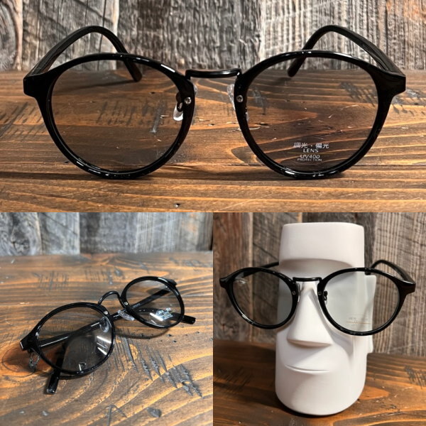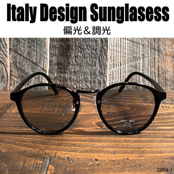 偏光・調光 サングラス 黒縁メガネ 伊達めがね Italy Design ボストン 丸メガネ イタリーデザイン ユニセックス 2854-1//